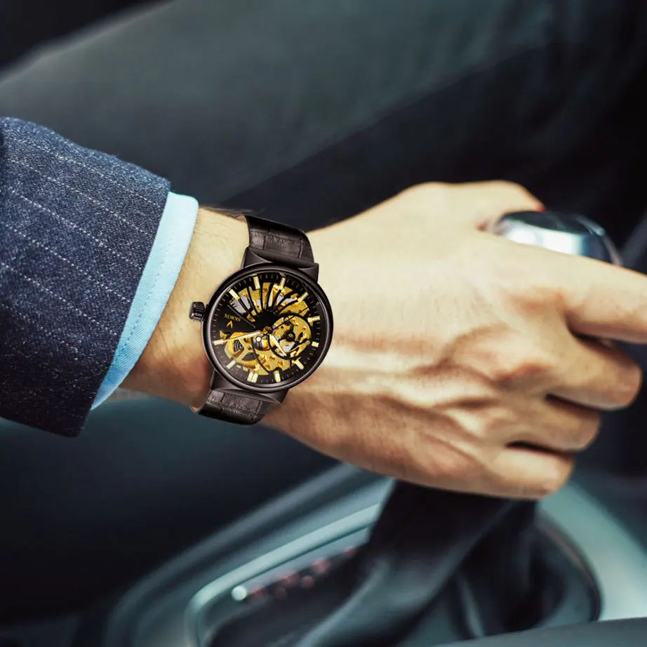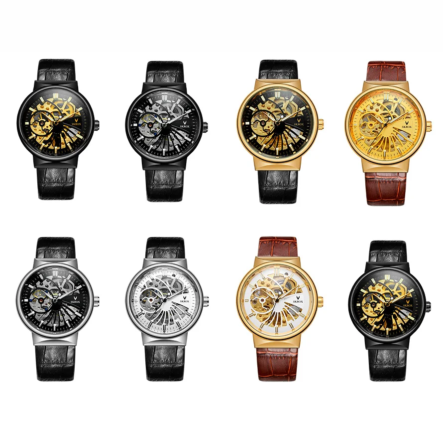 Les SKROX-Modules de Cadran Transparent sont des montres à vent mécaniques au style rétro. Avec leurs aiguilles shoes minces et leur bracelet en cuir de luxe, elles allient élégance et fonctionnalité. Leur cadran transparent permet d’apprécier le mouvement mécanique à l’intérieur, ajoutant une touche d’originalité.