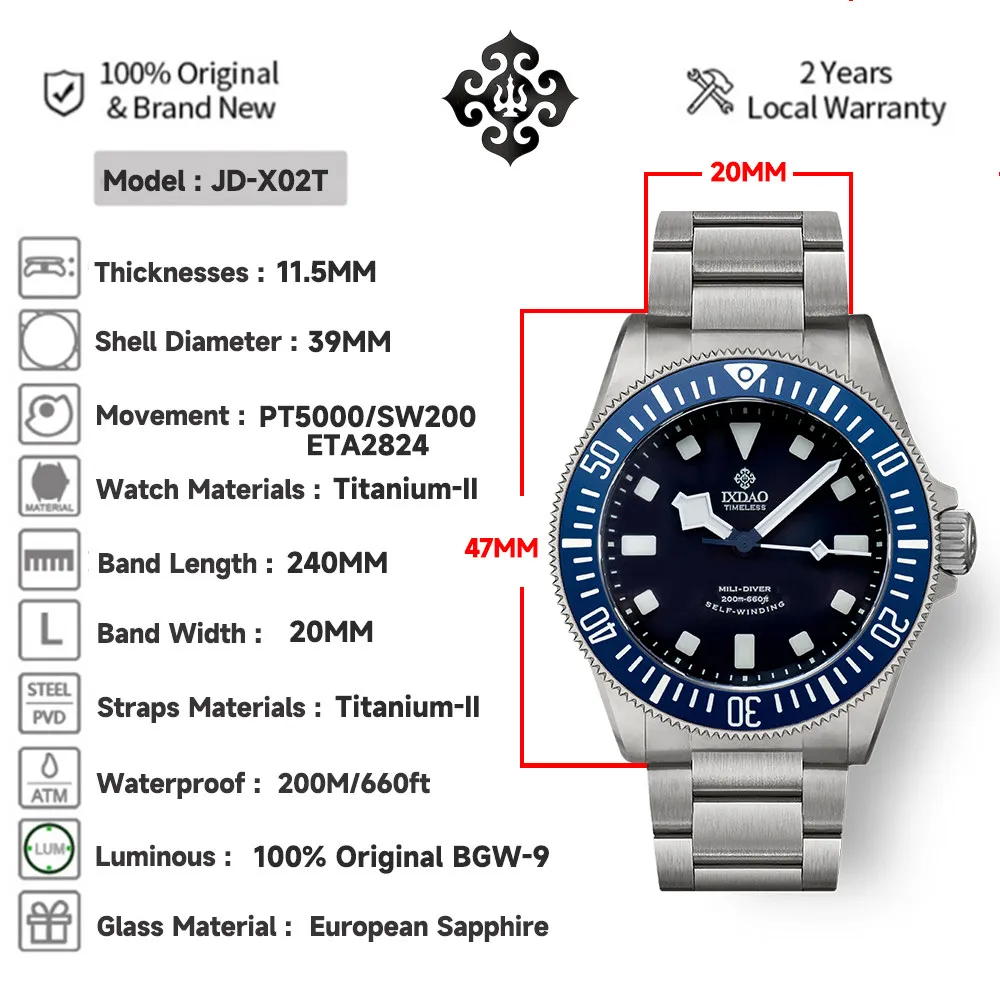 1. Boîtier: Titane avec finition polie à la main de haute qualité.