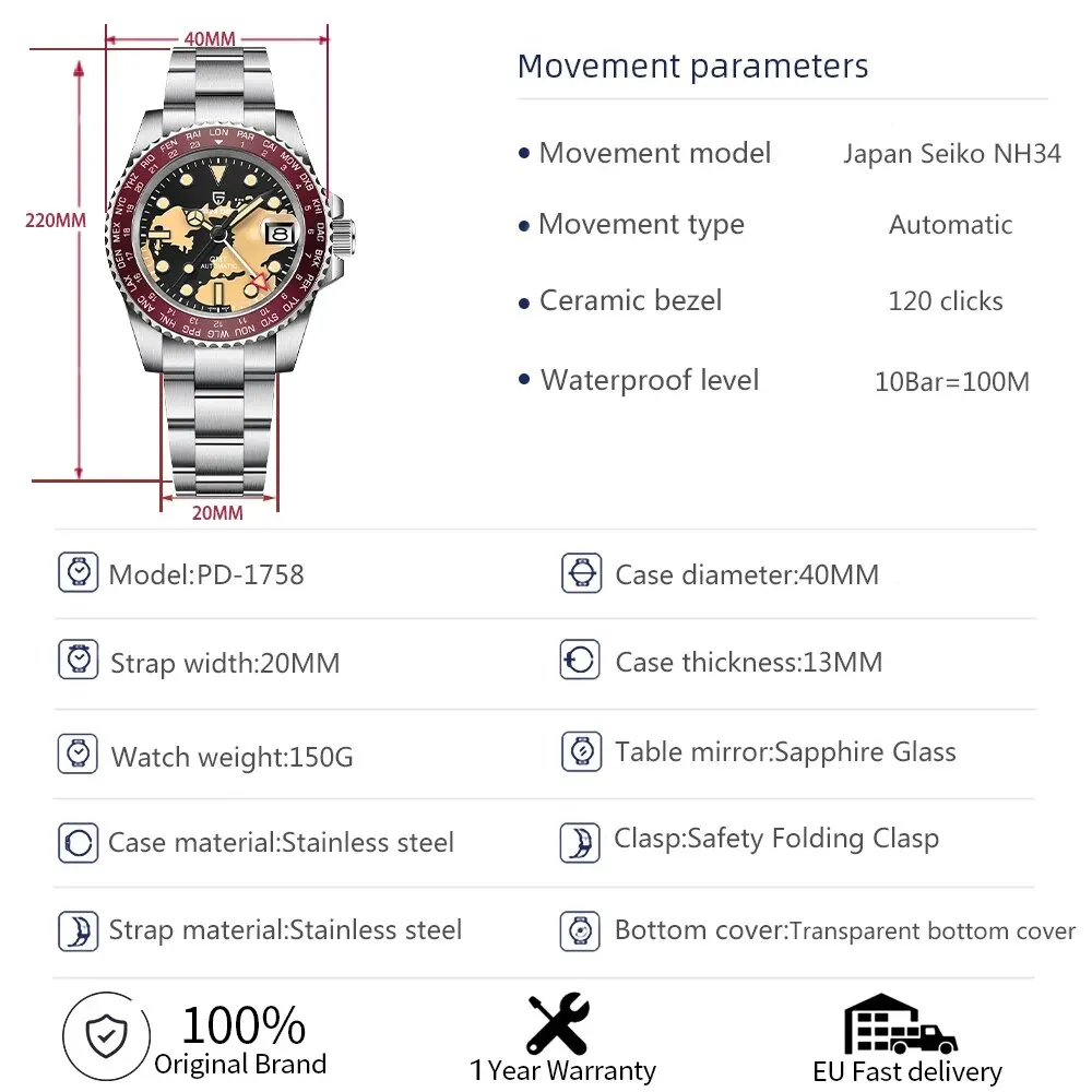 La montre PAGANI DESIGN PD-1758 est une montre mécanique destinée aux hommes. Elle est équipée d’un mouvement automatique d’auto-vent, qui assure un chronométrage précis sans avoir besoin d’un enroulement manuel.