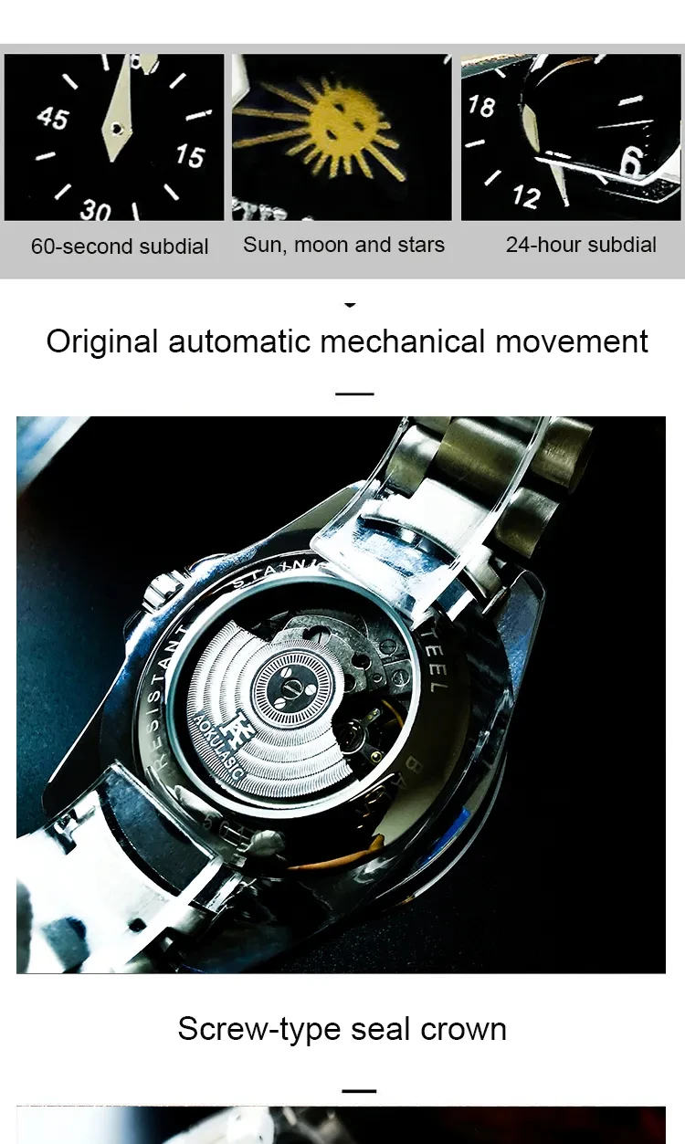 Mouvement: Automatique Auto-Vent Mécanique (Aucune batterie nécessaire)