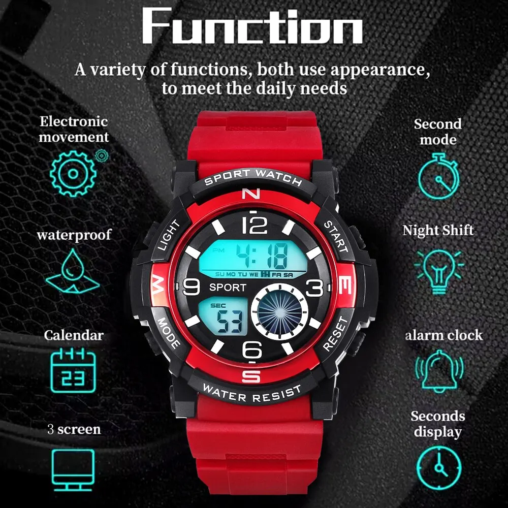 Montre numérique rouge pour homme, montre-bracelet de sport étanche, horloge à main extérieure, G betperform, choc, étudiant