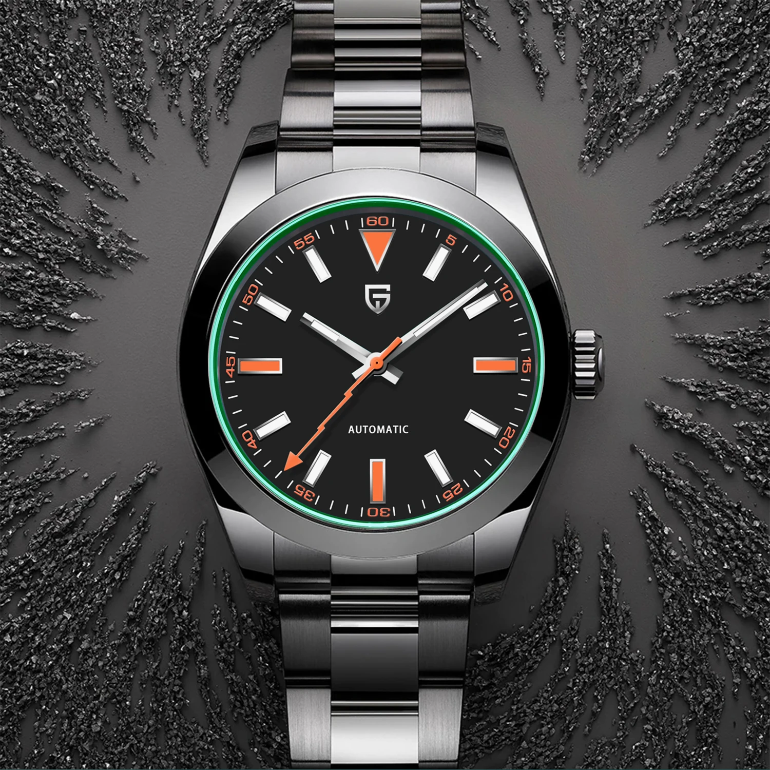 - Matériau de fenêtre à cadran: verre saphir vert (résistant aux rayures, revêtement AR)
