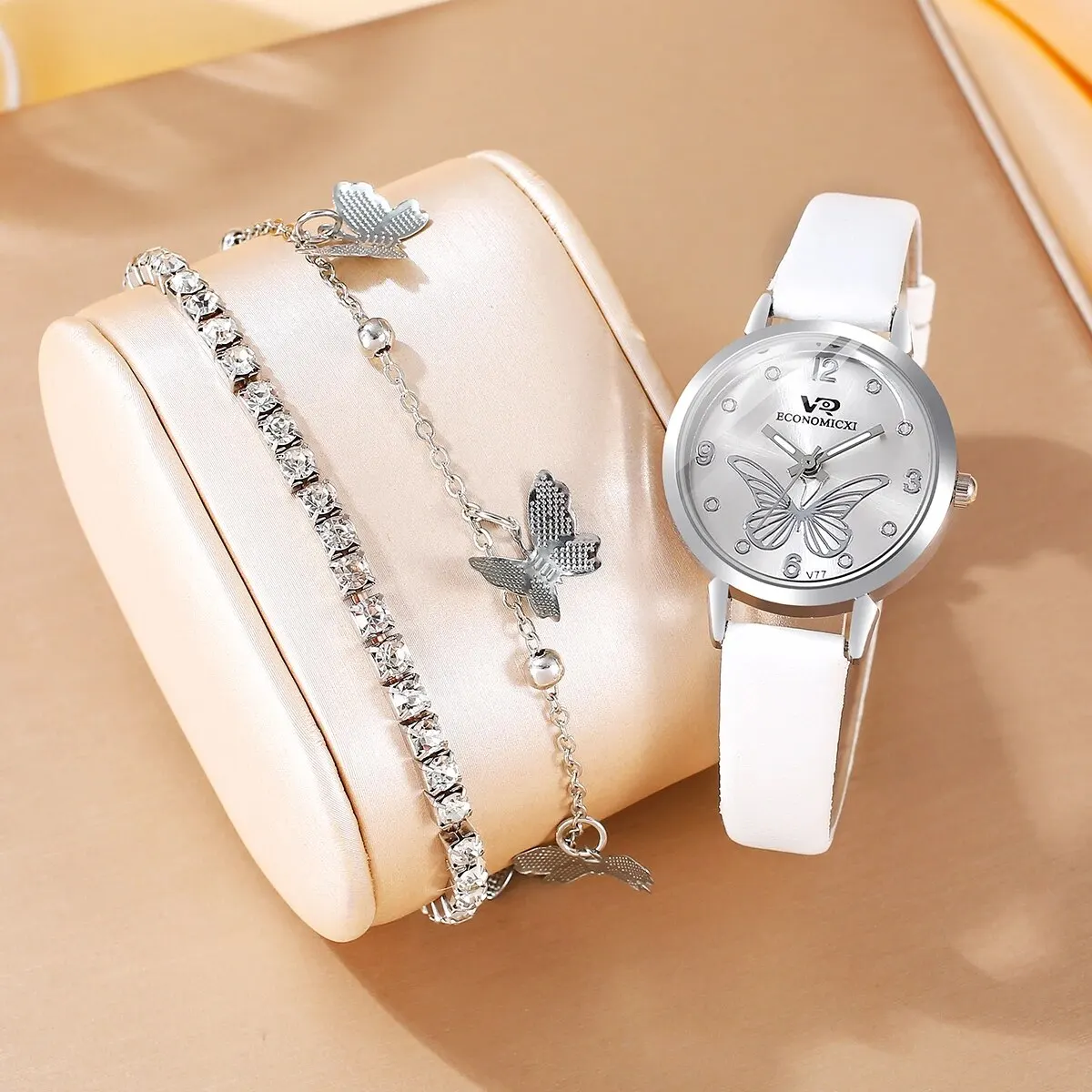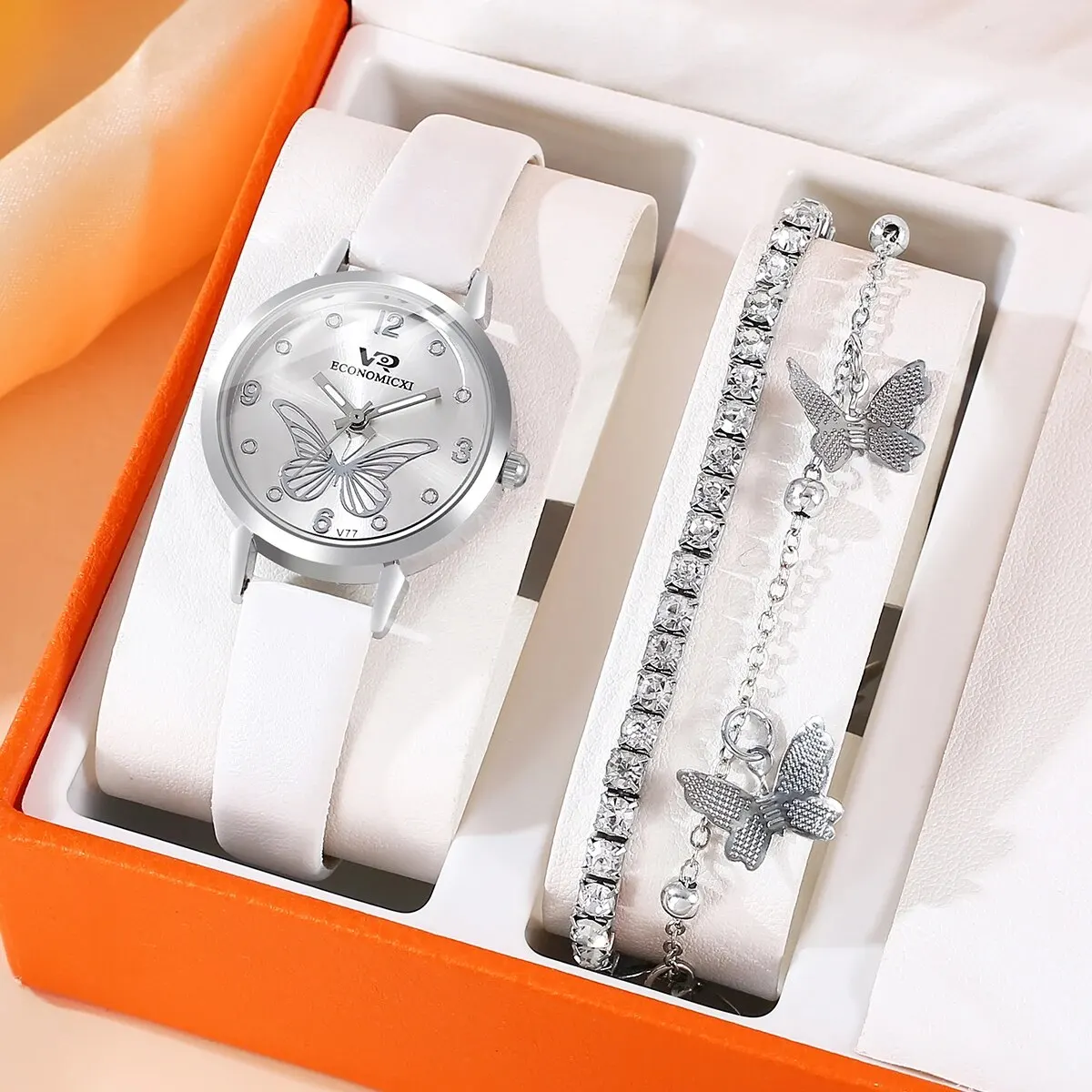 La montre à quartz numérique en cuir papillon pour femme est un ensemble de bijoux fantastique pour toutes les occasions. Son design unique en forme de papillon apporte une touche d’élégance et de féminité à la montre. L’ensemble est complété par des bijoux en forme de papillon et incrustés de diamants, ce qui en fait un ensemble complet pour un look élégant.