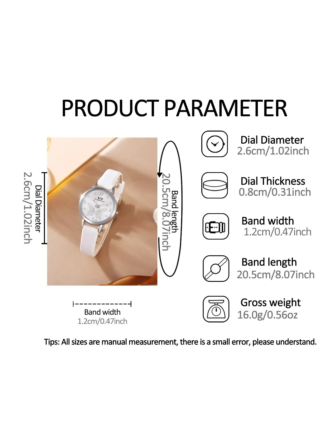 - Diamètre du boîtier de la montre: Environ 26mm