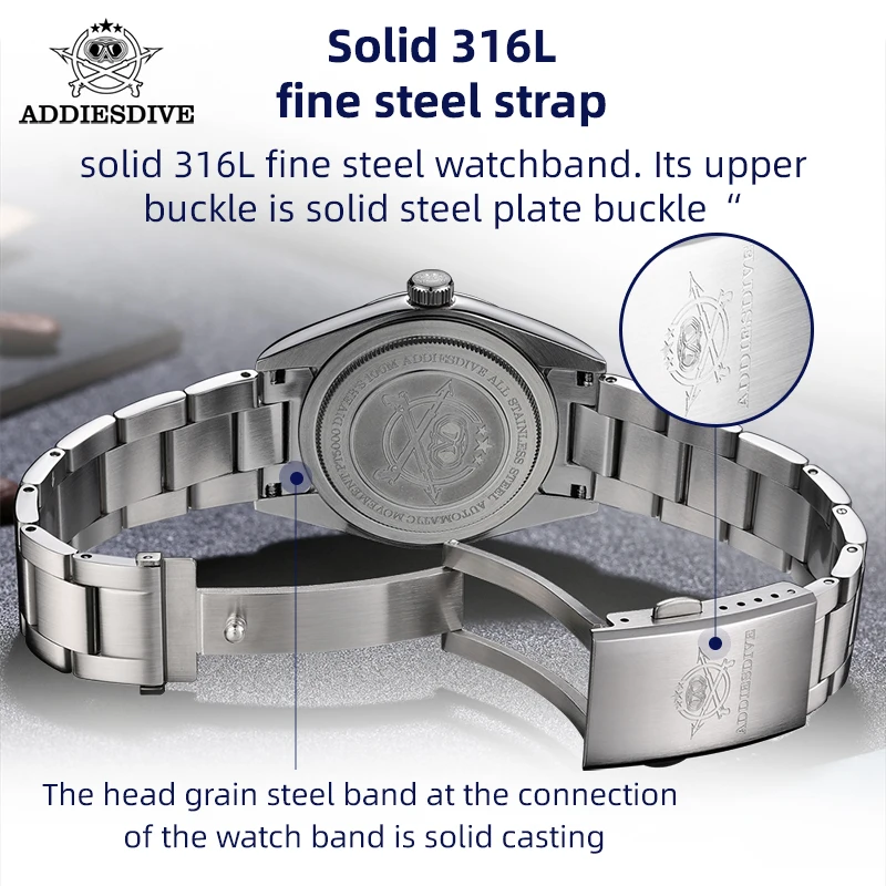 La montre ADDIESDIVE pour homme est un choix idéal pour les plongeurs et les amateurs de montres mécaniques. Son mouvement automatique offre une précision remarquable, tandis que le boîtier en acier inoxydable solide et le bracelet en acier fin 316L garantissent une durabilité à toute épreuve. De plus, le verre saphir synthétique et l’étanchéité jusqu’à 100 mètres font de cette montre un outil fiable, même dans les environnements les plus exigeants. Avec son cadran mat et ses détails exquis, cette montre est également un accessoire élégant qui s’adaptera à tous les styles. En conclusion, la montre ADDIESDIVE pour homme est un choix sûr pour les plongeurs passionnés et les amateurs de montres de qualité.