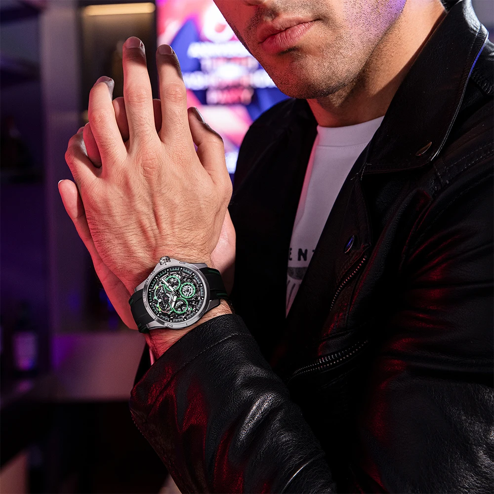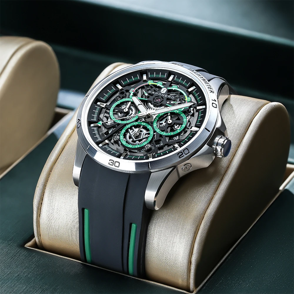 Son design masculin d’inspiration mécanique avec un boîtier surdimensionné et des détails audacieux offre une ambiance décontractée mais robuste qui est parfaite pour toute aventure, de jour comme de nuit. Que vous cherchiez une montre de tous les jours, un cadeau pour une occasion spéciale ou un cadeau pour un être cher, vous le trouverez ici. Les montres SAPPHERO sont toujours le choix parfait pour un cadeau, que ce soit pour une fête d’anniversaire, Noël, la fête des pères, la Saint-Valentin, etc. ou un cadeau mérité.