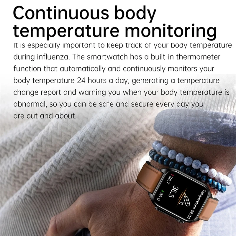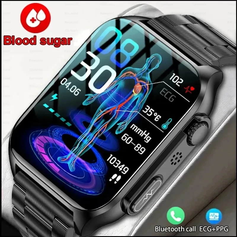 Appel Bluetooth + montre intelligente de température ECG et de glycémie