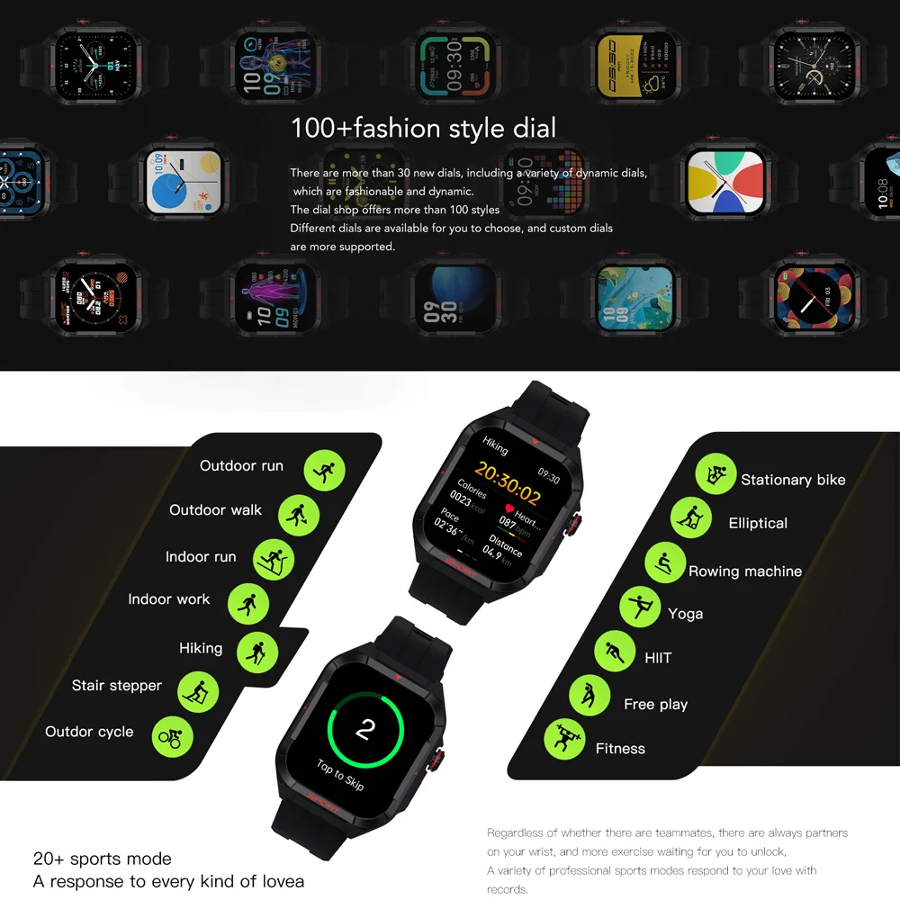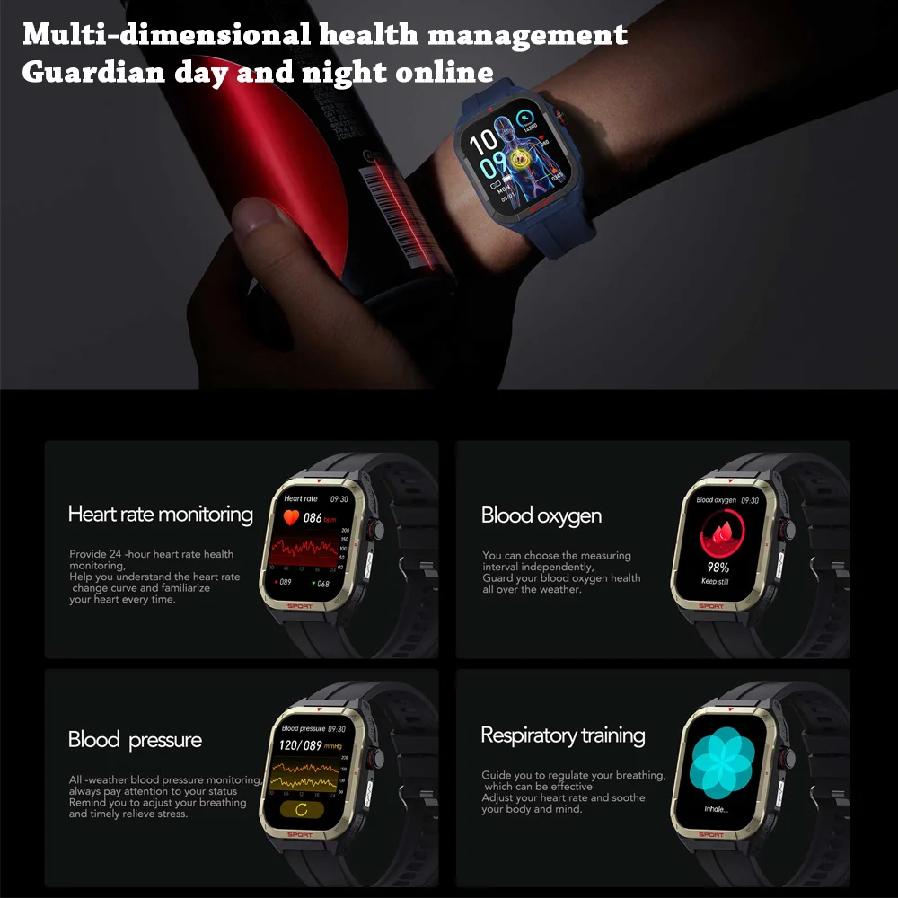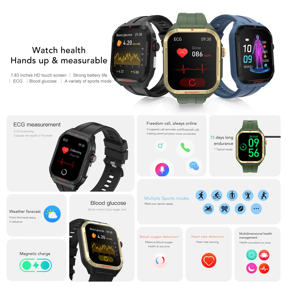 Écran tactile HD de 1.83 pouces | Batterie puissante ECG Glucose sanguin | Une variété de modes sportifs