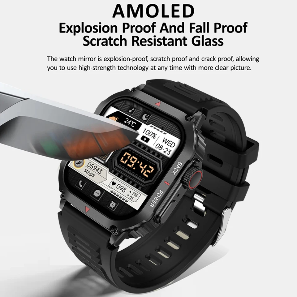 La montre intelligente de sport GPS pour homme présente un design élégant et robuste, idéal pour une utilisation en extérieur. Son écran AMOLED HD de 1.95 pouces offre une grande clarté et une résolution de 330*385 pixels, permettant une lecture facile des informations affichées.