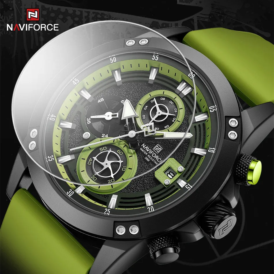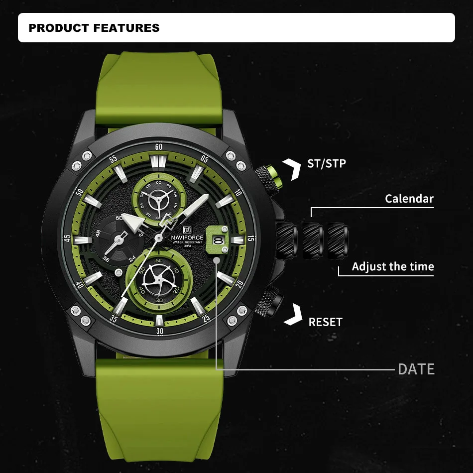 Le chronographe de la montre NAVIFORCE NF8033 permet la mesure du temps avec une grande précision.
