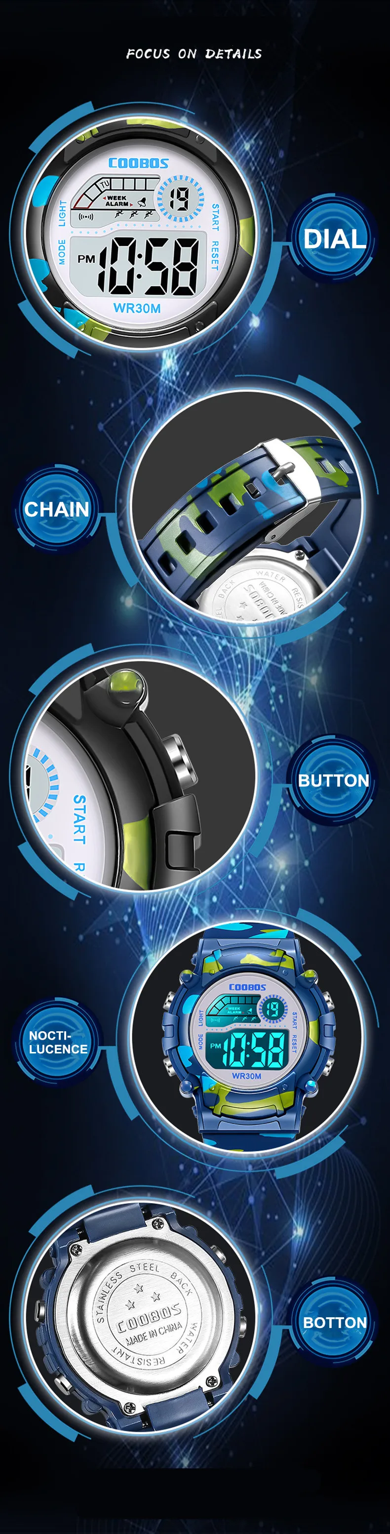 La montre numérique électronique COOBOS CamSolomon est conçue spécialement pour les enfants. Elle est