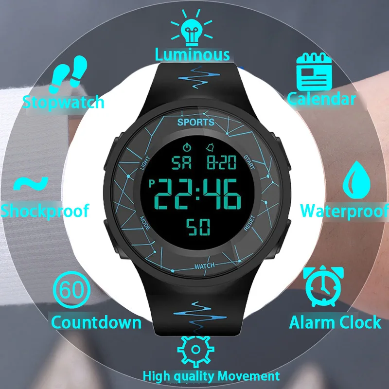La montre de sport Shoous a de nombreuses fonctionnalités avancées qui la rendent pratique pour les activités en extérieur. Son bracelet en silicone souple convient à tous les âges et sa conception simple lui permet de s’adapter à toutes les occasions. L’écran LED offre une lisibilité claire du cadran et la montre est étanche jusqu’à 50 mètres. Les clients apprécieront la polyvalence et la durabilité de cette montre.
