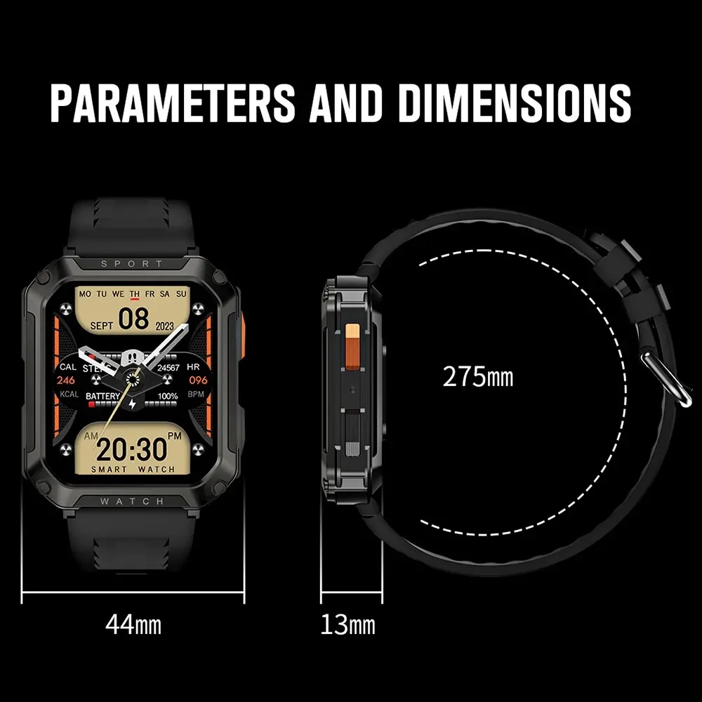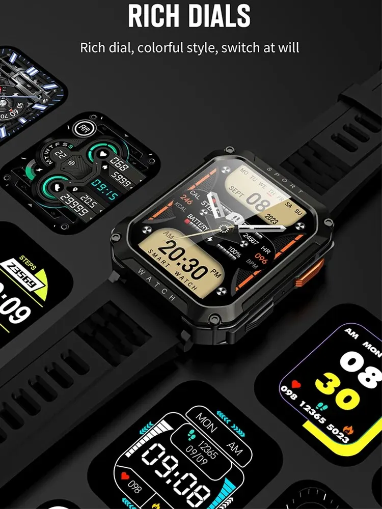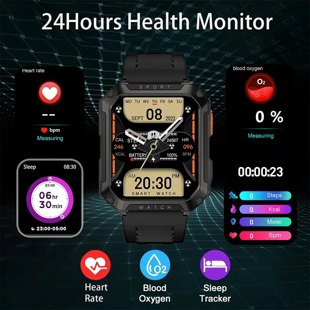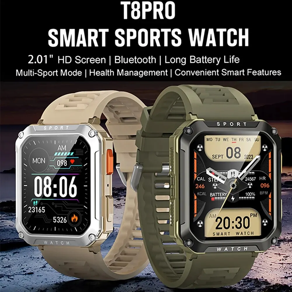 La montre intelligente militaire extérieure T8 PRO pour homme offre de nombreuses fonctionnalités intéressantes. Son grand écran de 2,01 pouces offre une expérience visuelle claire et immersive, ce qui facilite la consultation des informations. De plus, l’assistant vocal intégré permet un contrôle mains libres pratique de la montre.
