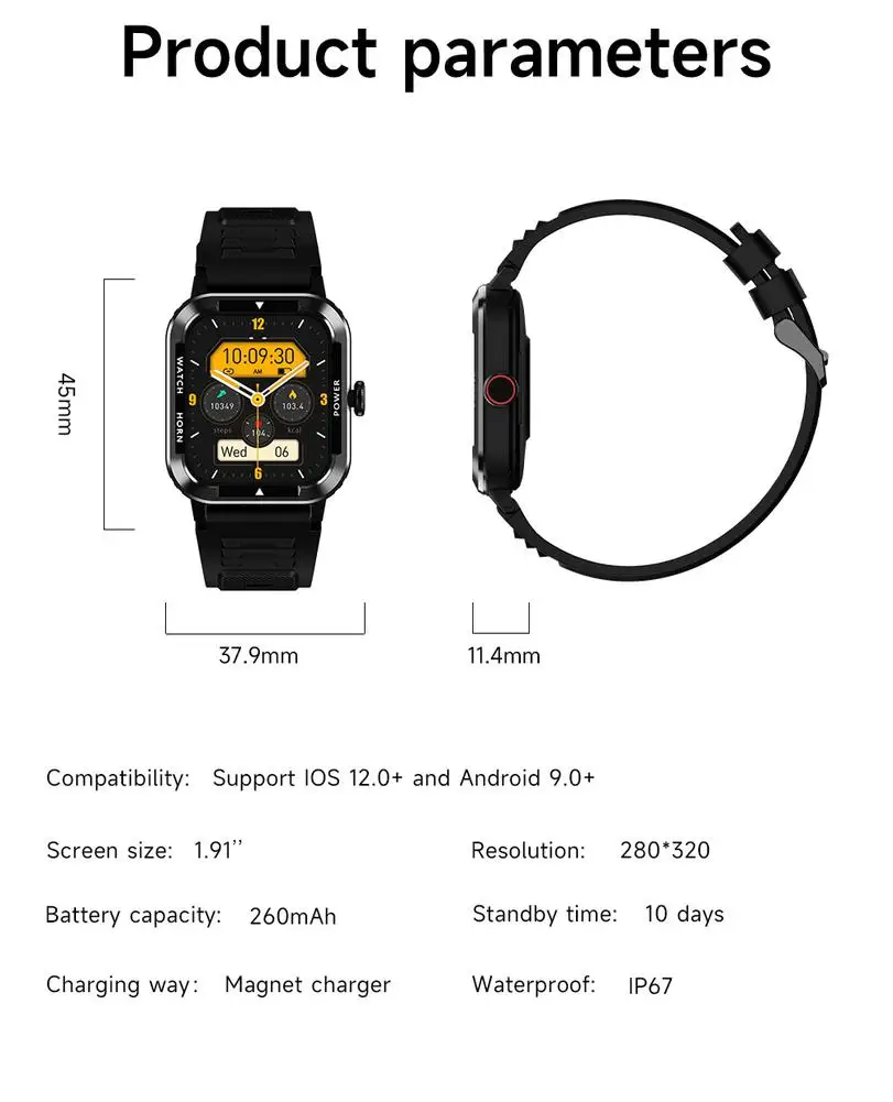 La montre est dotée d’un écran IPS LCD de 1.91″ avec une résolution de 280×320, offrant une bonne visibilité pour afficher les informations de suivi de la santé et des activités. De plus, elle possède une compatibilité Bluetooth 5.2, assurant une connexion stable avec votre smartphone.