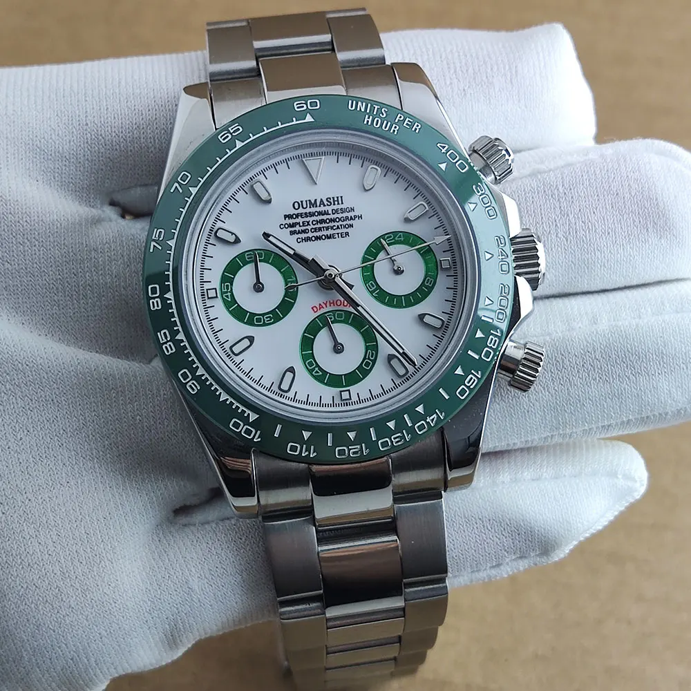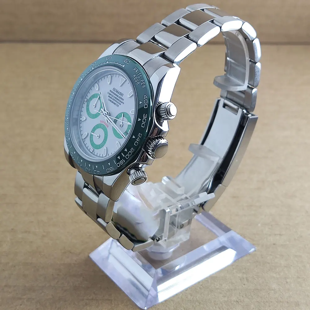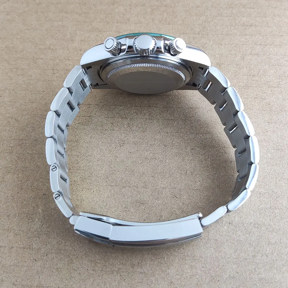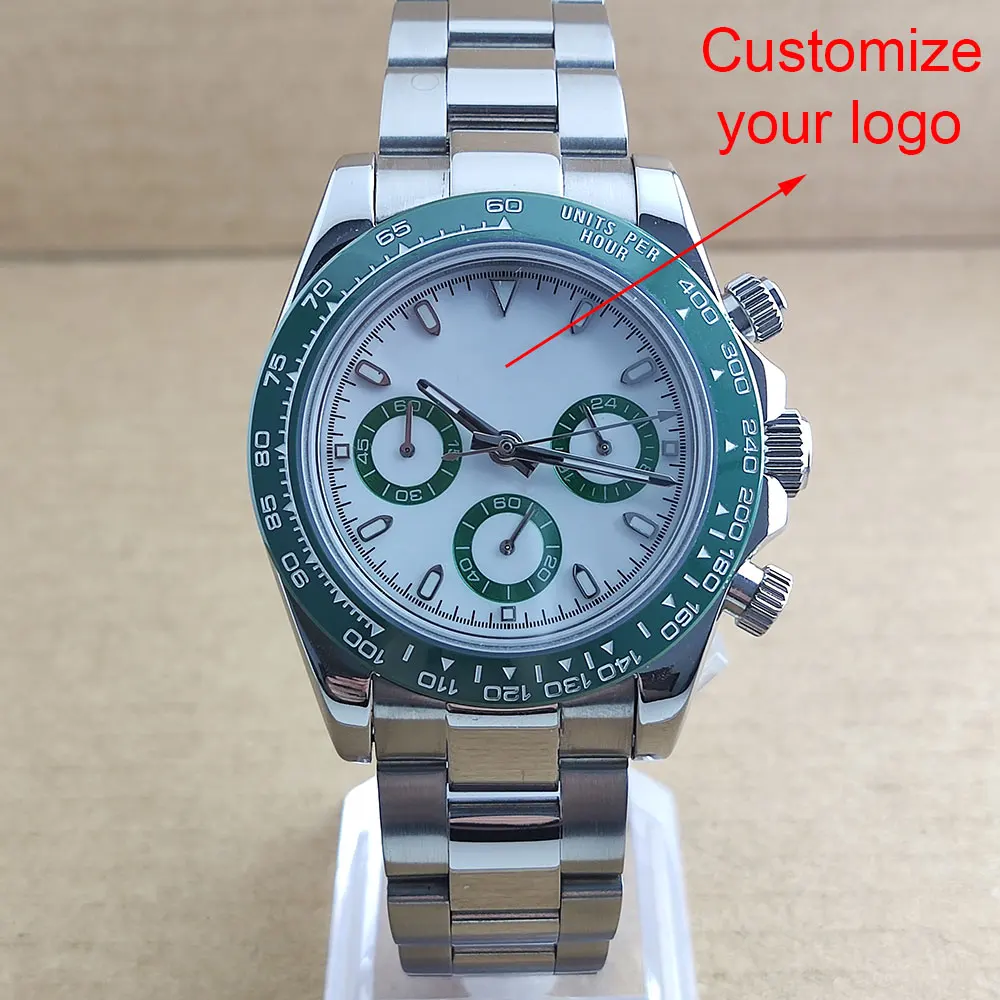 Cette montre est équipée du mouvement VK63, ce qui lui confère une grande précision. Elle dispose également d’un bracelet en acier inoxydable et d’un verre en saphir, ce qui garantit sa durabilité et sa résistance aux rayures. Avec un diamètre de coque de 39.3mm, cette montre convient parfaitement aux hommes. De plus, elle est dotée d’une fonction de chronométrage, ce qui la rend pratique pour mesurer le temps avec précision. Enfin, il est possible de personnaliser le logo de cette montre, ce qui en fait un excellent choix pour un usage commercial.