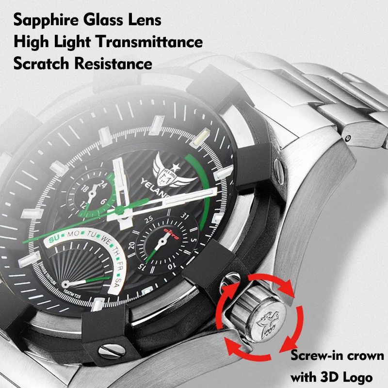 | Yelang | V1208 | JAPON JR20 MOUVEMENT | ACIER INOXYDABLE MATERIAL-316L SOLIDE | 45.5mm | 16.5mm | 22mm | CHAPEAU SUPÉRIEUR VERRE CRISTAL SAPHIR, REVÊTEMENT AR | PULLYPE DROIT | BRACELET EN ACIER INOXYDABLE MASSIF 316L | 10BAR = 100 MÈTRES | 226G | 2 ANS |