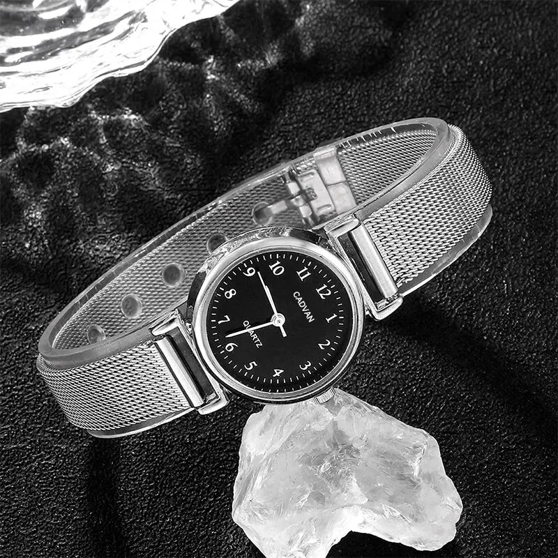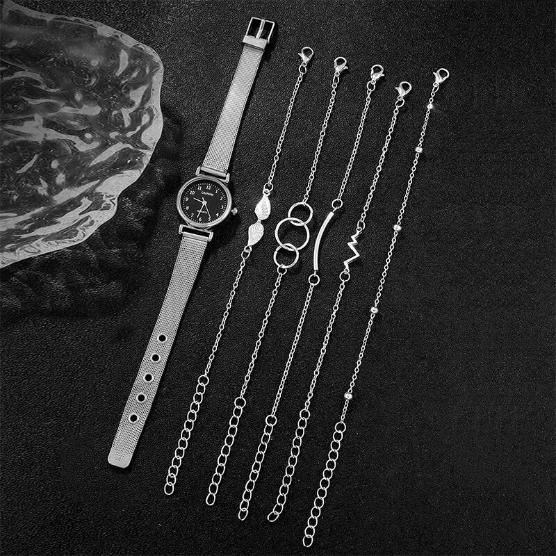 L’ensemble de montres à quartz en maille argentée pour femmes est un choix élégant pour les dames qui cherchent une horloge habillée et de luxe. L’ensemble comprend 6 pièces, dont une montre-bracelet et 5 bracelets supplémentaires pour une plus grande polyvalence.