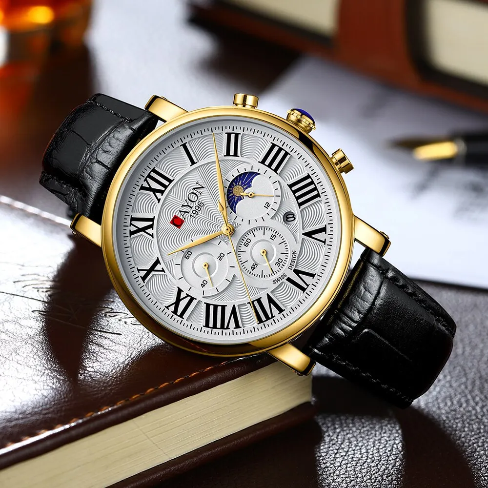 Le modèle CAYON-Montres à quartz étanches pour hommes avec bracelet en cuir est un choix idéal pour ceux qui recherchent une montre alliant style et fonctionnalité. La résistance à l’eau de 3Bar permet une utilisation quotidienne sans soucis, tandis que le matériau de fenêtre cadran Hardlex assure une lisibilité optimale. Le bracelet en cuir est à la fois durable et confortable, ce qui en fait une montre parfaite pour une utilisation toute la journée. De plus, le mouvement Quartz offre un chronométrage précis pour ne jamais être en retard. Dans l’ensemble, cette montre est un excellent choix pour les hommes à la recherche d’une montre haut de gamme qui allie style et fonctionnalité.