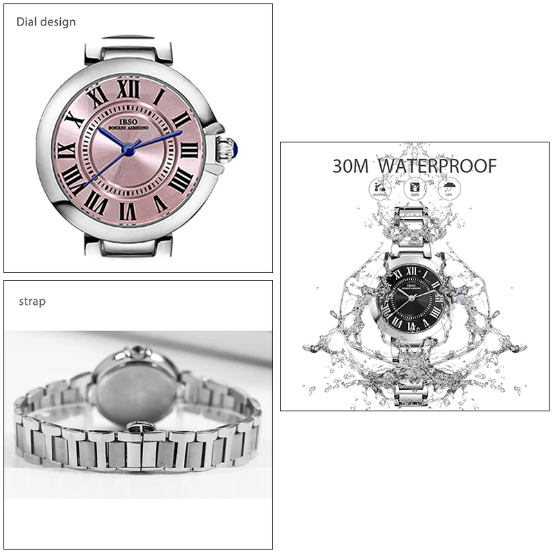 Mode Original femmes montres-bracelets rose en acier inoxydable étanche femme main horloge luxe concepteur à la mode noir montre dame