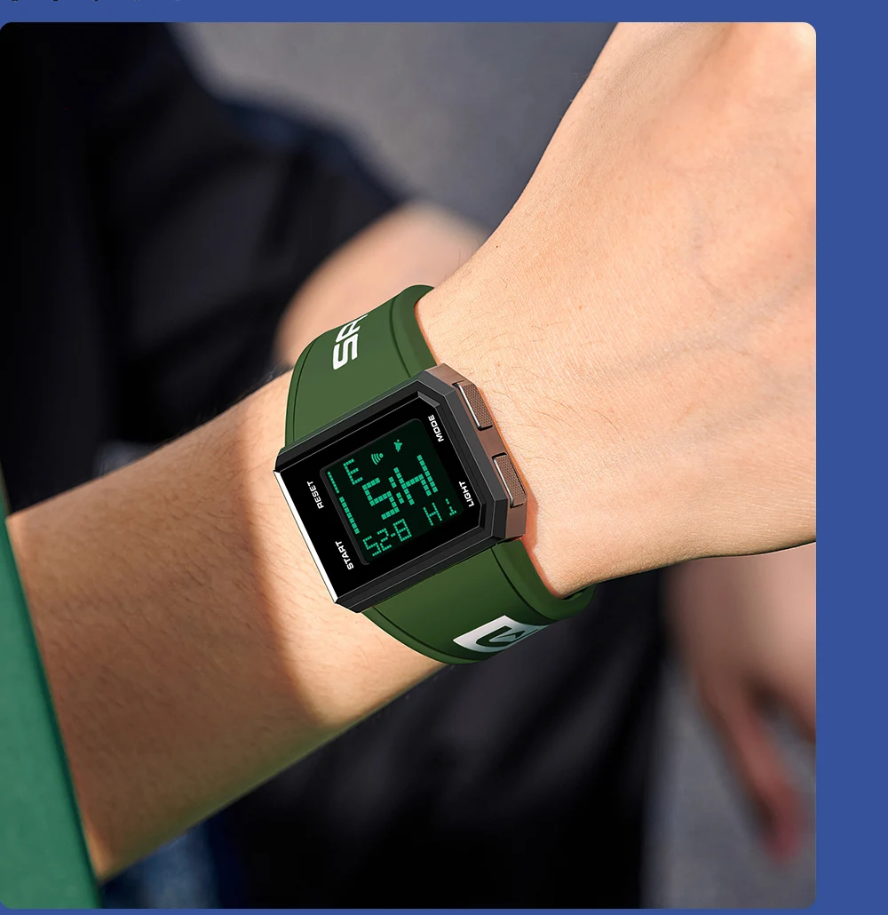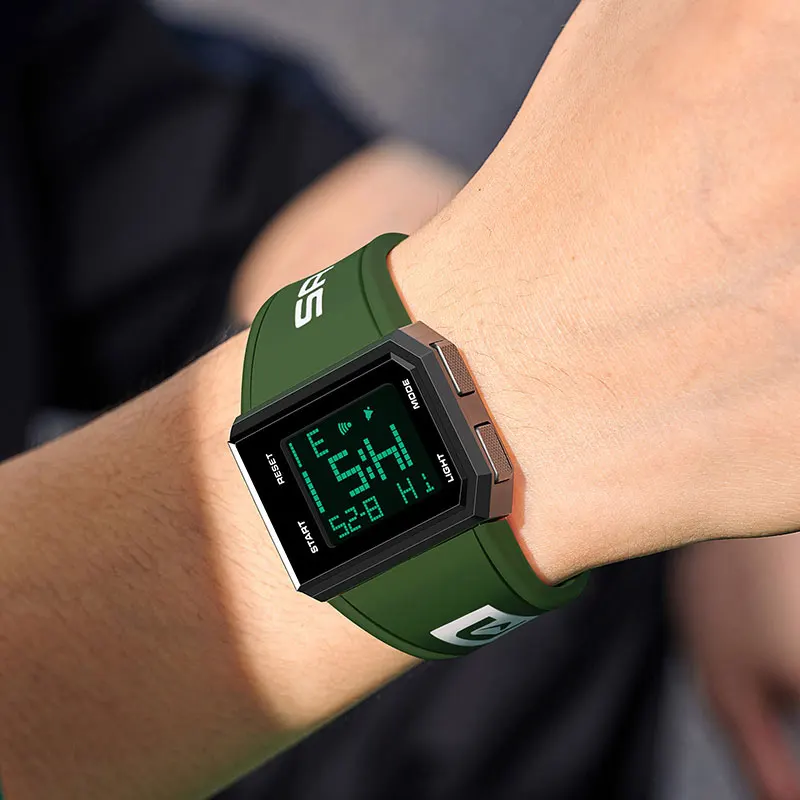 | Caractéristiques: Chronomètre, Rétro-éclairage, Résistant aux chocs, Affichage LED, Lumineux, Date automatique, Plongeur, Résistant à l’eau, Alarme, Nager, Semaine |