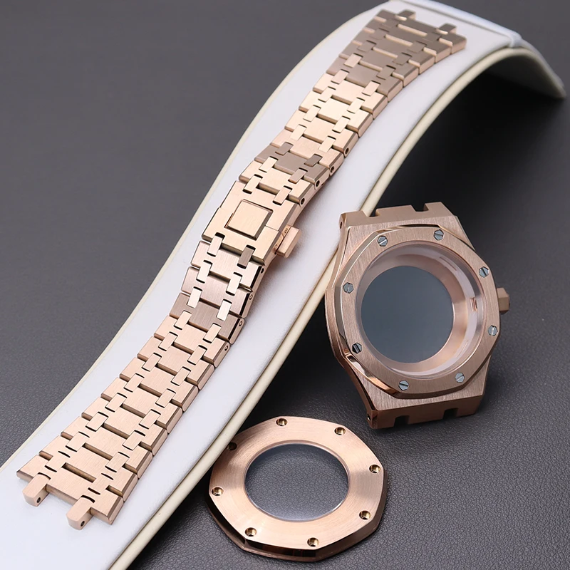 Or rose 41mm boîtiers de montre pièces bracelet de montre accessoires pour Seiko nh34 nh35 nh36 nh38 mouvement 31.8mm cadran saphir cristal verre