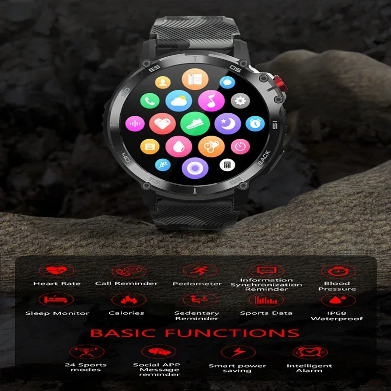 La montre intelligente de sport pour hommes, étanche IP68, est un accessoire idéal pour les personnes actives qui souhaitent suivre leurs activités physiques et leur santé. Avec son boîtier robuste et sa résistance à l’eau, cette montre peut être portée pendant vos activités sportives, que ce soit en plein air ou à la salle de sport.