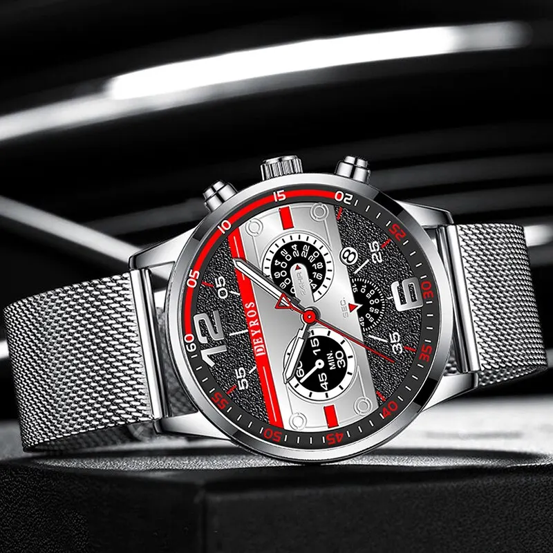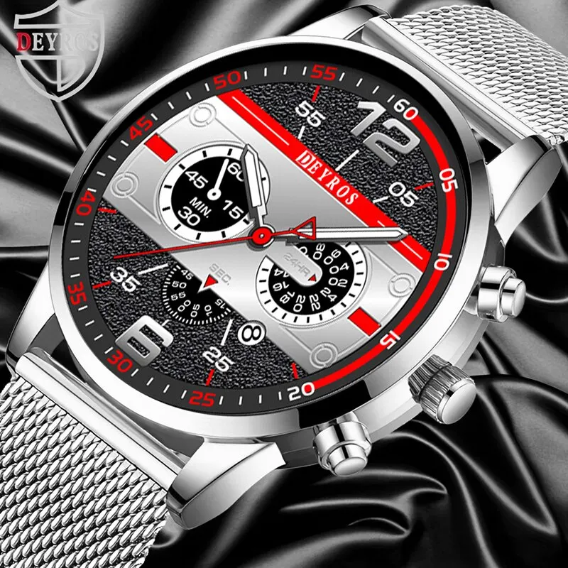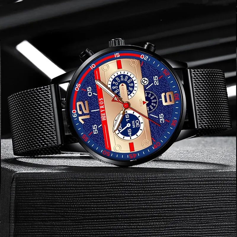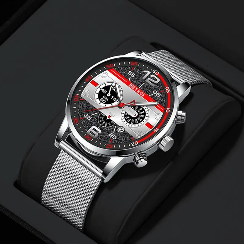 Test et Avis sur les Montres de sport à quartz en acier inoxydable pour hommes, ceinture en maille, horloge Shoous en cuir d’affaires, mode de luxe