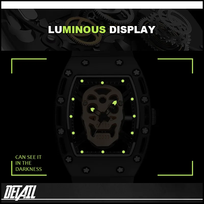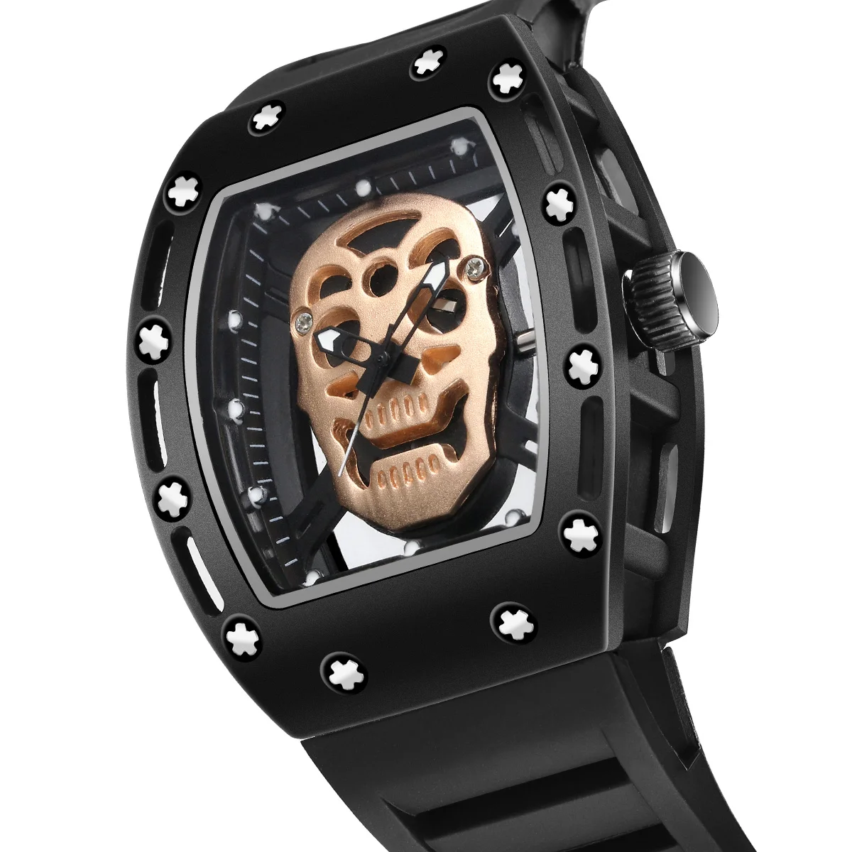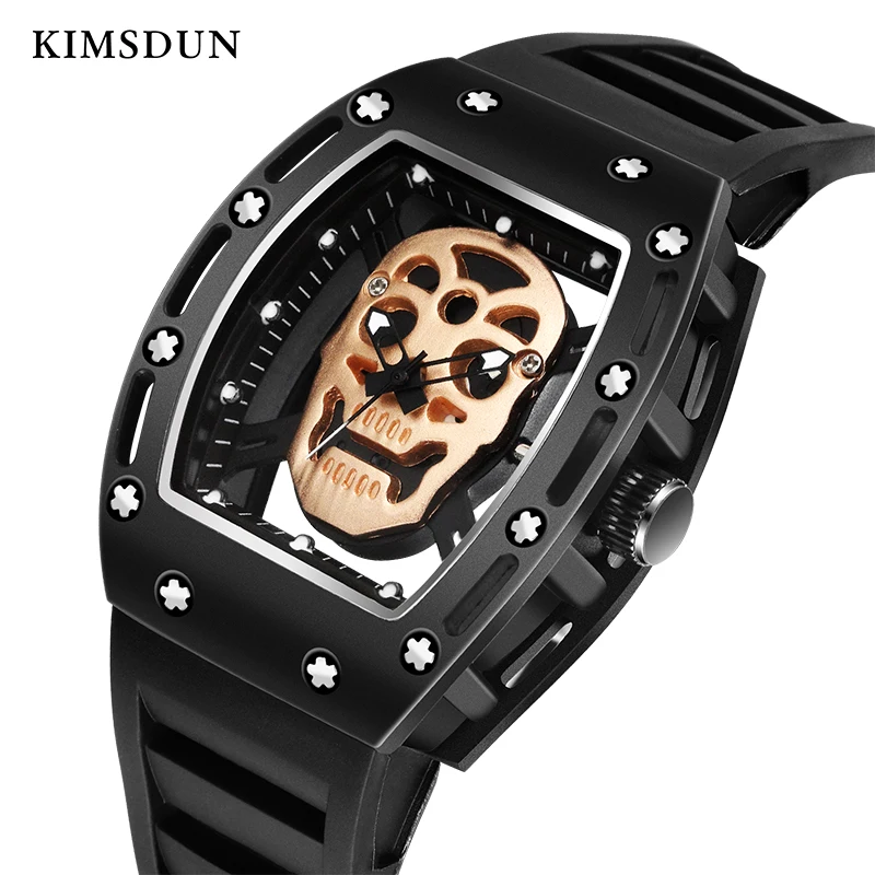 Les montres à cadran tête de mort pour hommes de la marque Kimsdun sont des montres-bracelets à quartz de style punk noir. Elles sont dotées de modules de bracelet en caoutchouc de sport et d’une grande horloge cool, offrant un look de mode spécial pour les hommes en 2023.
