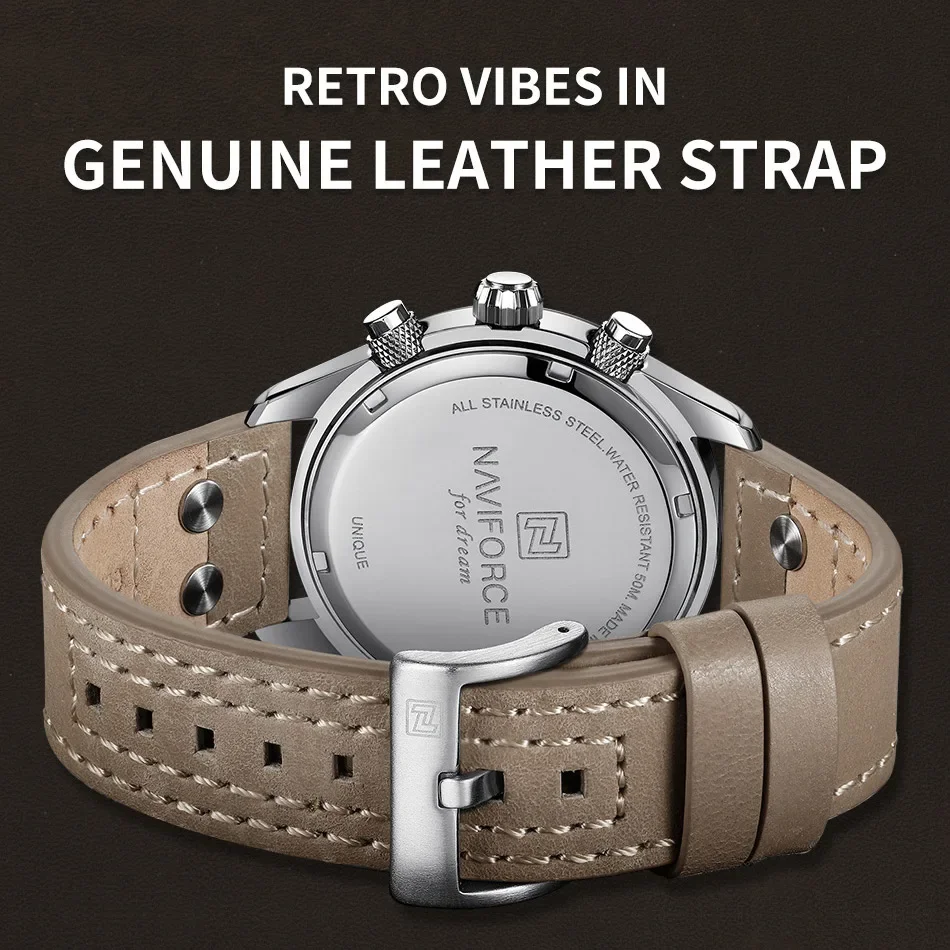 Les montres NAVIFORCE pour hommes sont équipées d’un mouvement solaire, ce qui signifie qu’elles ne nécessitent pas de pile. Elles sont conçues pour être portées à la fois en mode décontracté et sportif, offrant ainsi polyvalence et style. Le bracelet en cuir véritable ajoute une finition élégante et confortable à la montre.