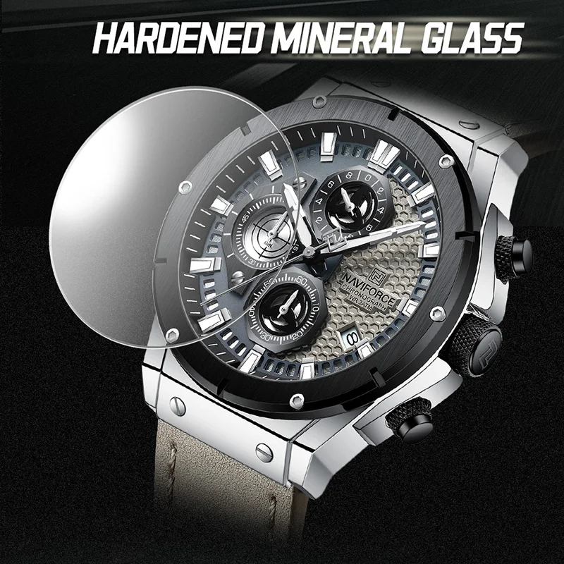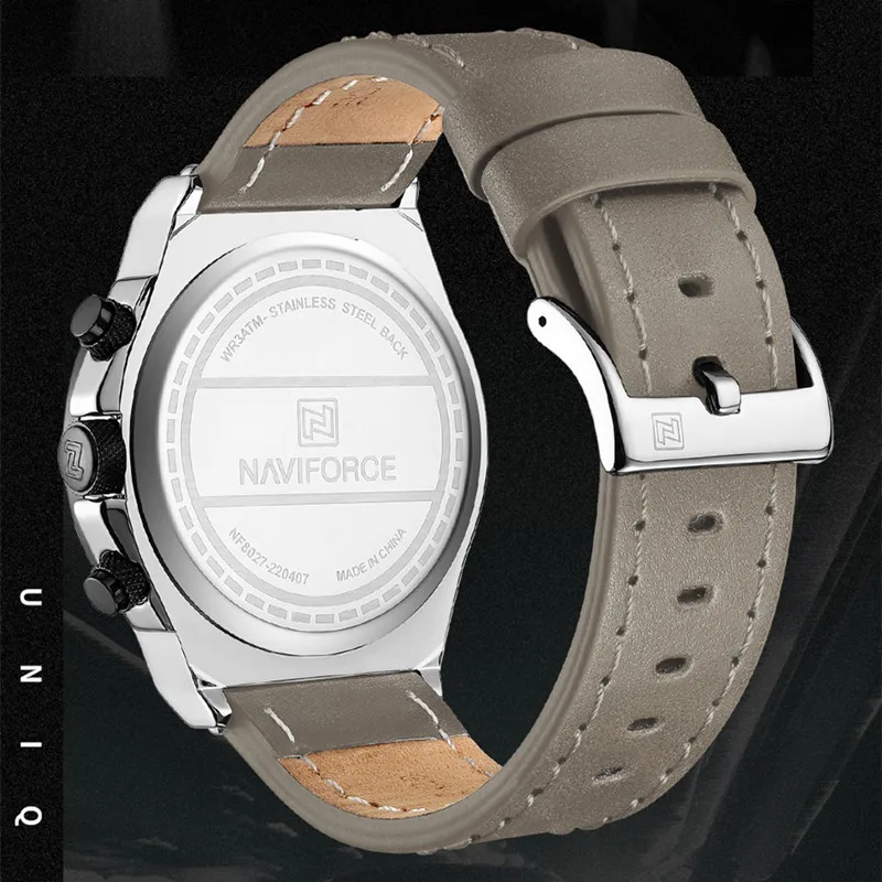 Le modèle NAVIFORCE NF8027L présente un design élégant et à la fois décontracté, ce qui en fait une montre polyvalente adaptée à toutes les occasions. Son cadran de 45mm et son bracelet en cuir lui confèrent un aspect masculin et robuste, tandis que son verre minéral trempé assure une résistance aux rayures et aux chocs.