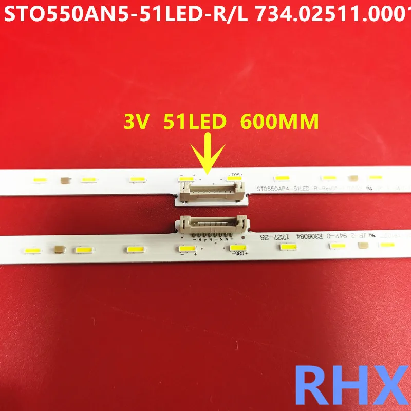 Bande de rétroéclairage LED pour Sony KD-55X8000E KD-55X7096E STO550AN5-51LED-R/L 734.02511.0001 V550QWS 3V 51LED 600MM 100% NEW