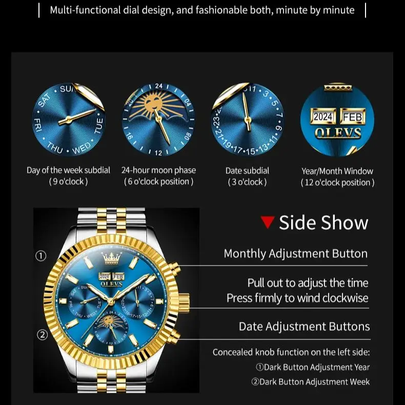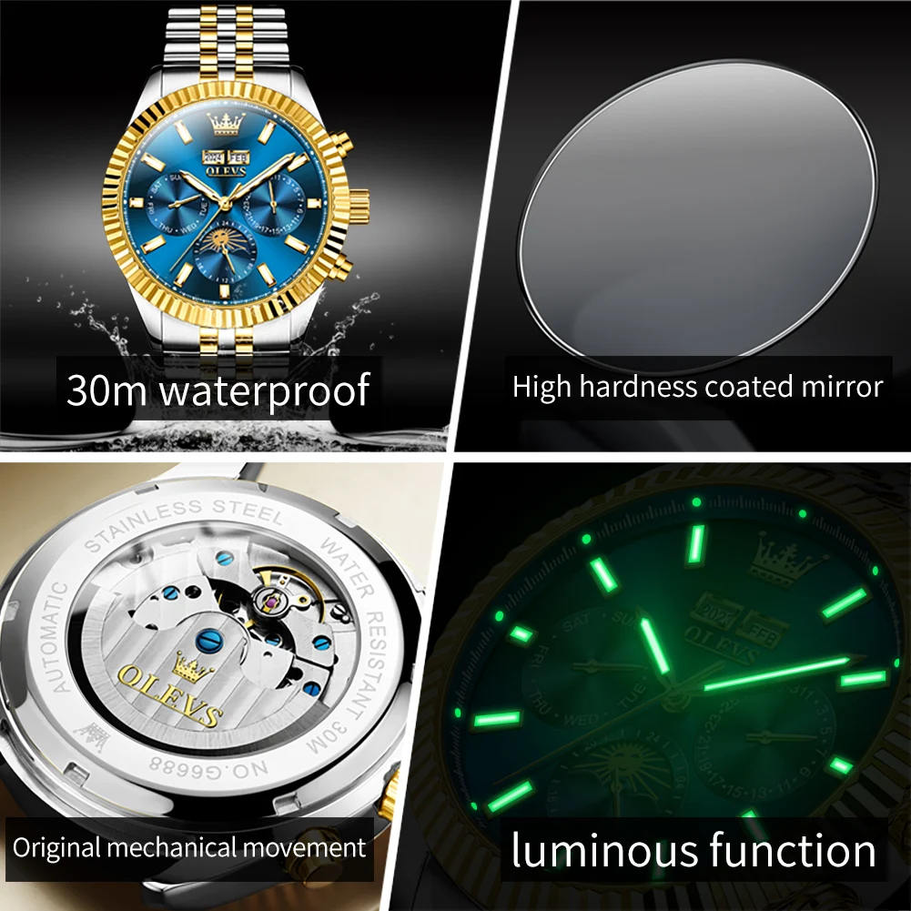 Voici les points importants à retenir de la montre OLEVS-Montre Mécanique existent Multifonctionnelle pour Homme :