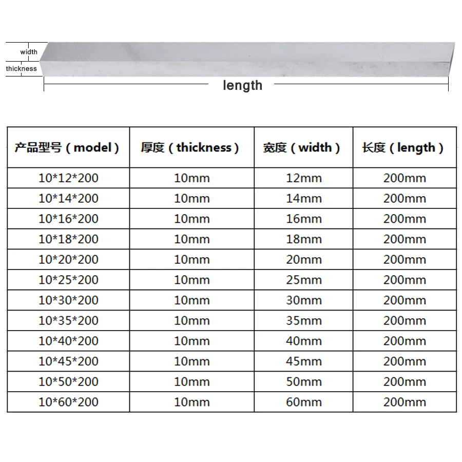 | Couteau en acier blanc | Barre en acier blanc | Épaisseur 10mm de long 200mm | Outil de tournage en acier à grande vitesse | Lame de tour CNC | Insert en acier HSS |