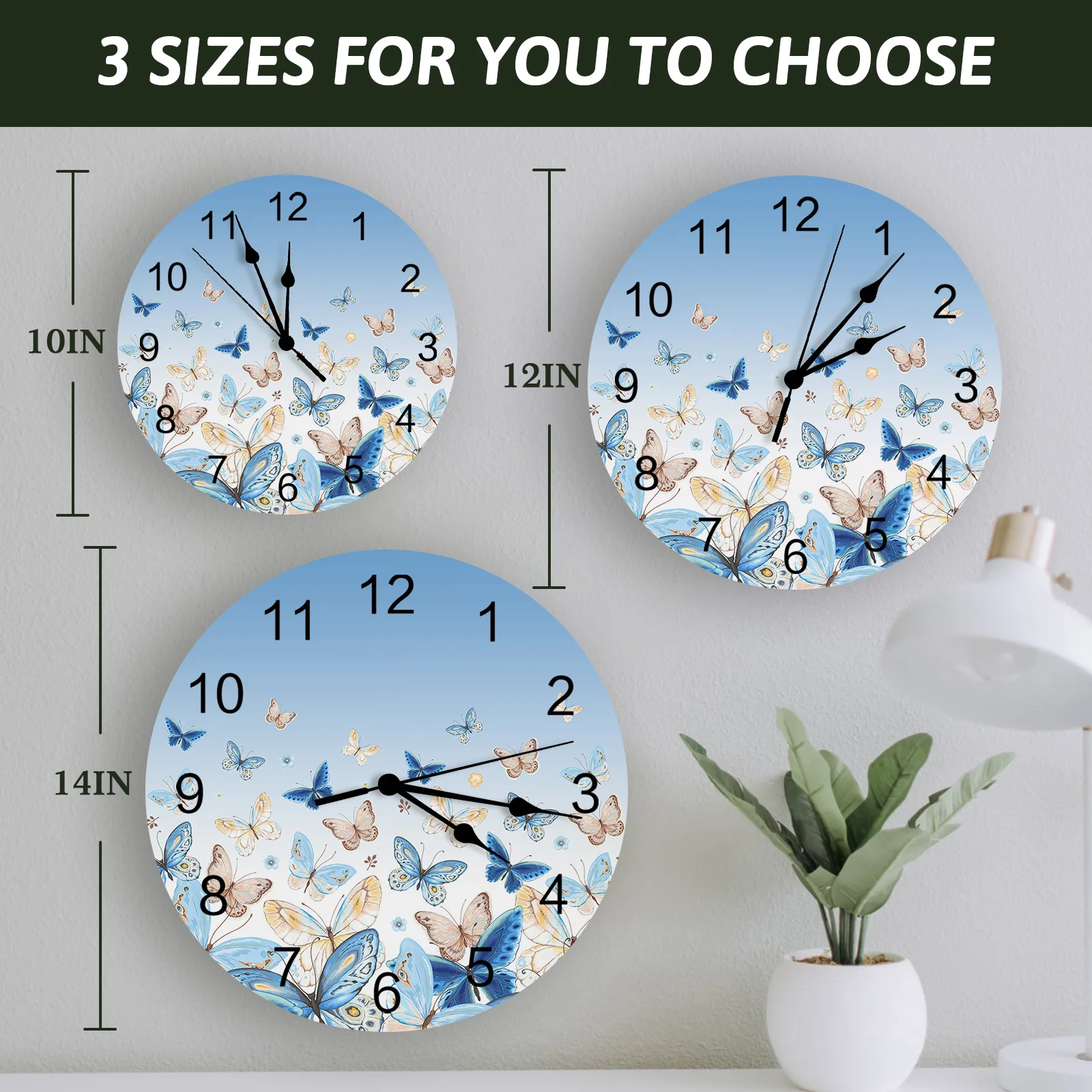 Cette horloge murale imprimée papillon en nickel et bleu est à la fois pastorale et moderne. Idéale pour le salon, elle apporte une touche élégante à la décoration d’intérieur. Cette montre-bracelet murale est silencieuse, vous offrant un environnement paisible. Fabriquée en PVC de haute qualité, elle est durable et résistante. Son mouvement de balayage garantit une haute précision et une grande stabilité. Cette horloge murale est disponible en trois tailles: 25x25cm, 30x30cm et 35x35cm. Elle peut être utilisée dans différents espaces, tels que le salon, le bureau, la salle à manger et la chambre à coucher. Elle est alimentée par des piles au carbone AA (non incluses).