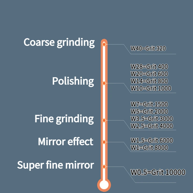 - Améliore l’effet de meulage de manière progressive, du grain 40 au grain 10000