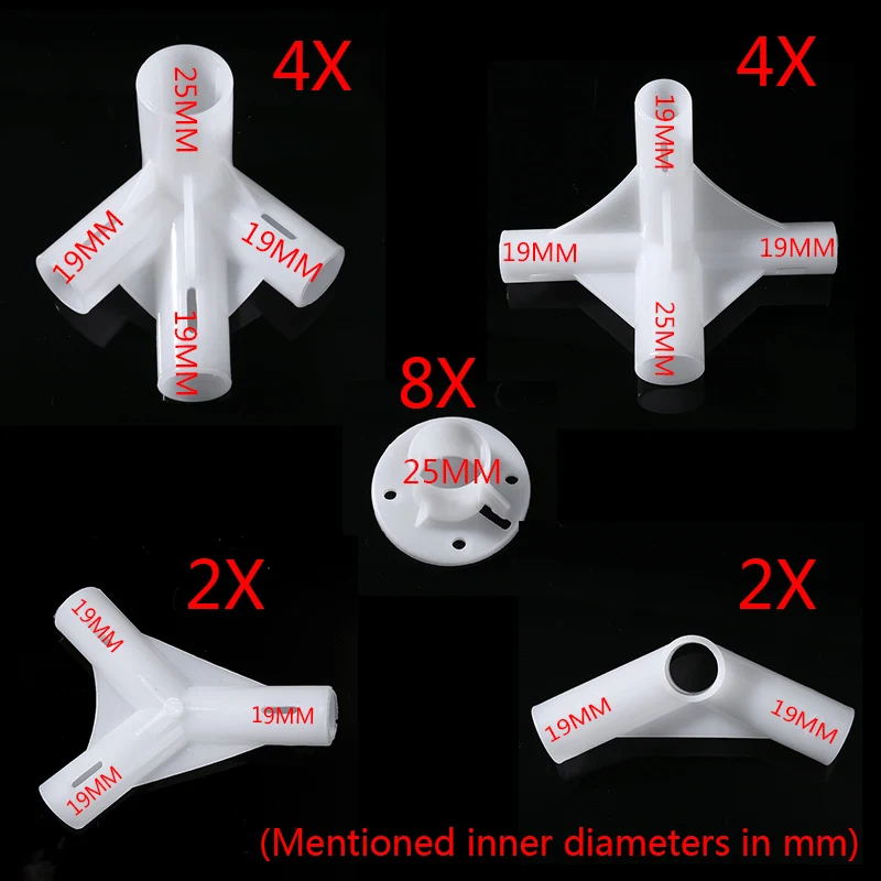 Connecteurs d’angle diamètre intérieur: 25mm/19mm/19mm/19mm