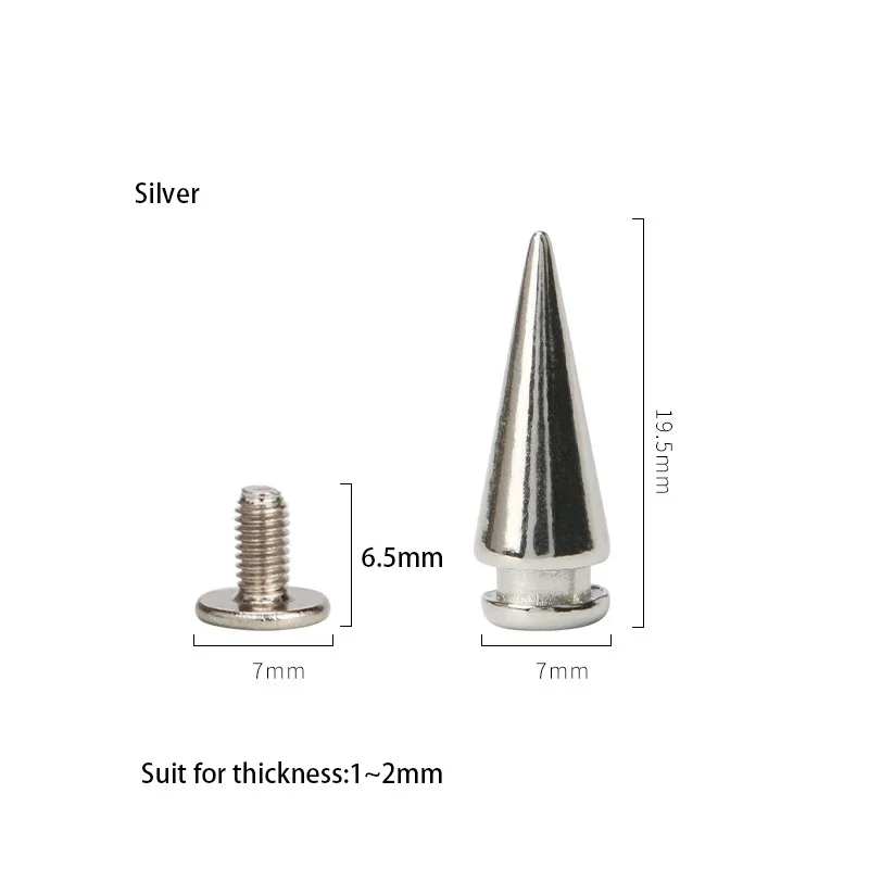 7*20mm 100 ensembles Zine alliage tour Type Punk Spike cône taches goujons maroquinerie Rivets balle pointes pour cuir