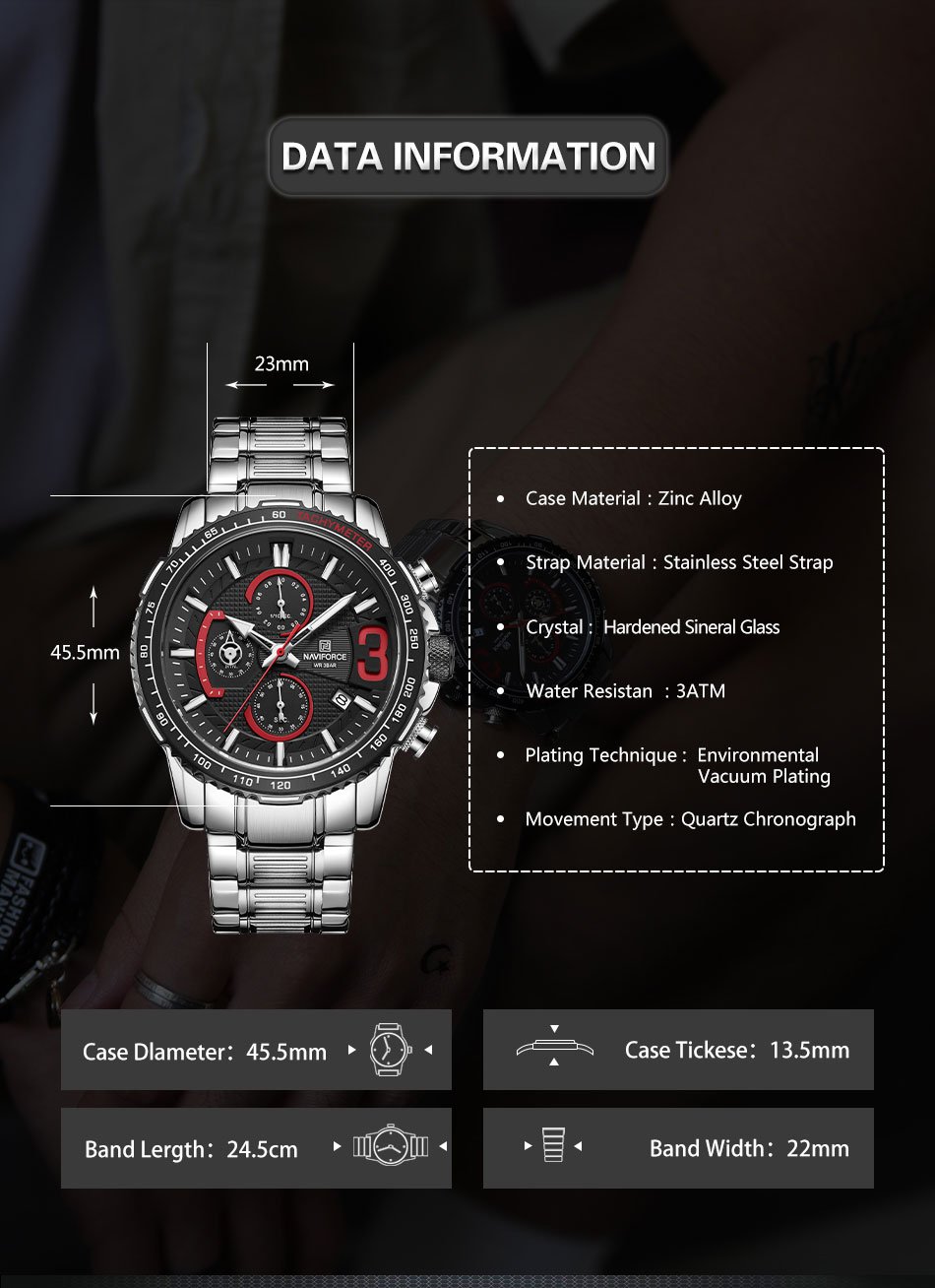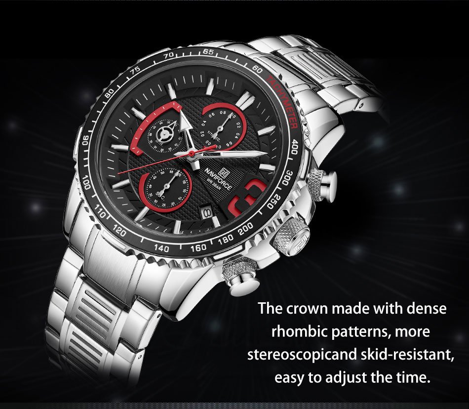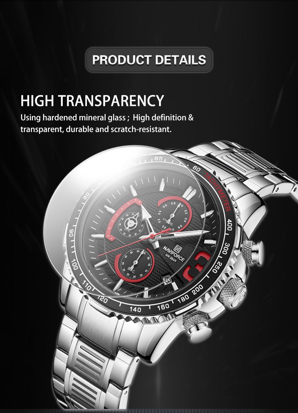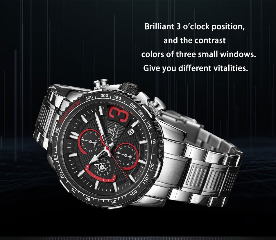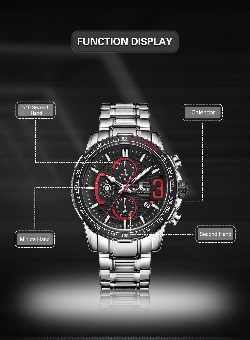 Découvrez le NAVIFORCE NV24 - Cardan Noir Rouge, la montre indispensable pour les amateurs de sport et de style !