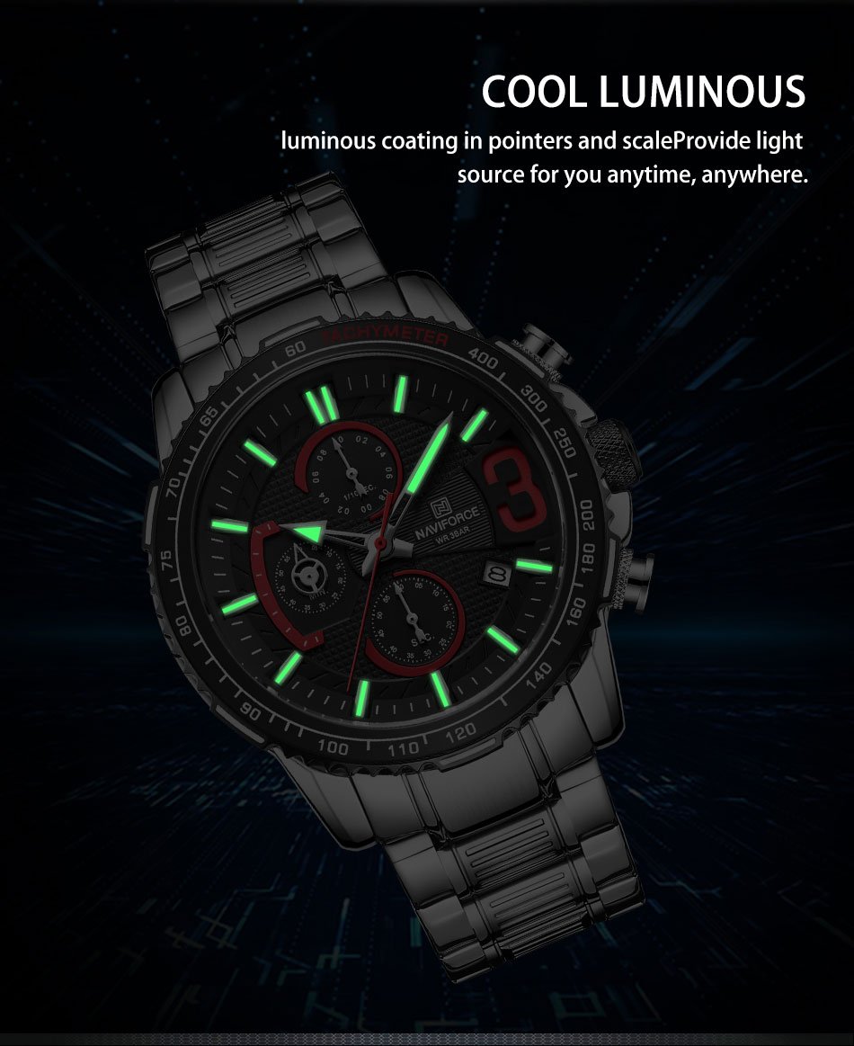 Avec sa couleur noire intense, sa touche de rouge et son bracelet en caoutchouc, cette montre de la marque NAVIFORCE offre un look résolument moderne et tendance, parfait pour les occasions sportives ou décontractées.