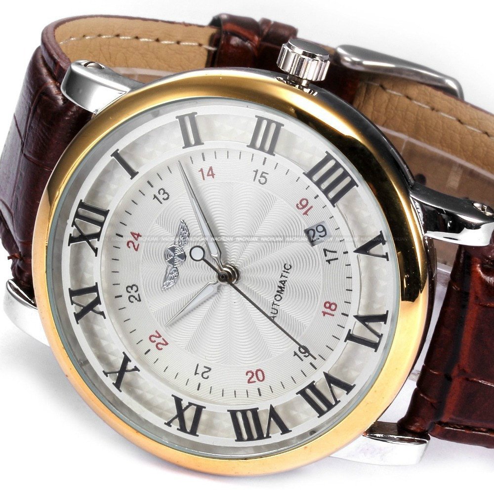Cette montre mécanique est dotée d’un mouvement automatique de haute qualité pour une précision incomparable. Avec son bracelet en cuir véritable, elle est confortable à porter tout en ajoutant une touche de luxe à votre tenue.