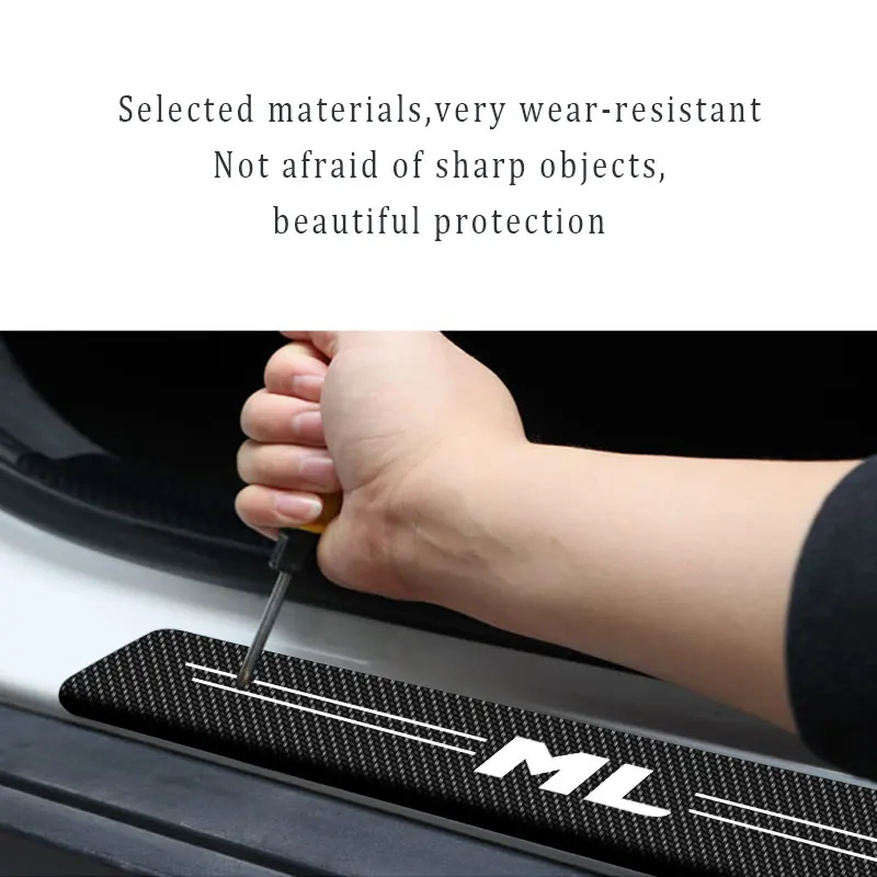 Les Autocollants anti-rayures pour seuil de porte de voiture Mercedes Benz ML sont des accessoires intérieurs automatiques conçus pour protéger le seuil de votre voiture. Ils sont fabriqués en autocollants en vinyle fibre de carbone, ce qui leur confère un super fini en fibre de carbone. Une fois installés, ces autocollants apportent une apparence cool et exquise à votre voiture.