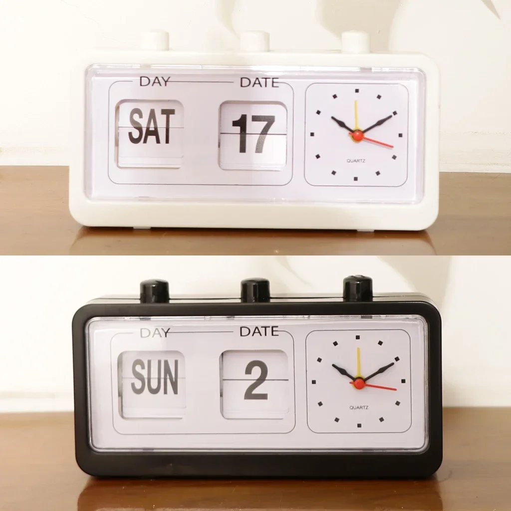 Réveil à quartz rétro vintage, horloge d’affichage du calendrier à rabat