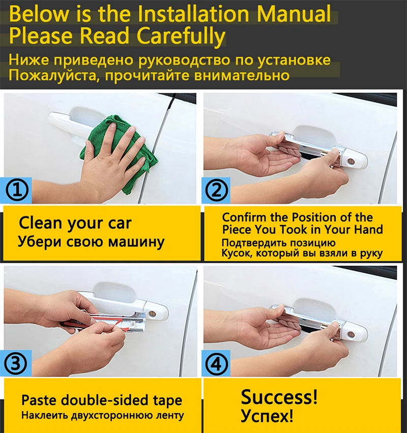 L’article en question est un revêtement de poignée de porte chromé de luxe, conçu spécifiquement pour les modèles Renault Latitude de 2010 à 2019 ainsi que pour le Saab Samsung SM5. Cet accessoire de voiture est doté d’un autocollant de protection. Il s’agit d’un produit neuf de haute qualité, facile à installer grâce à sa bande adhésive 3M. Aucune découpe ni perçage ne sont nécessaires lors de l’installation. Notez toutefois que l’effet sera amélioré si la gomme du ruban est chauffée et qu’il est recommandé de ne pas laver votre voiture dans les trois jours suivant l’installation.