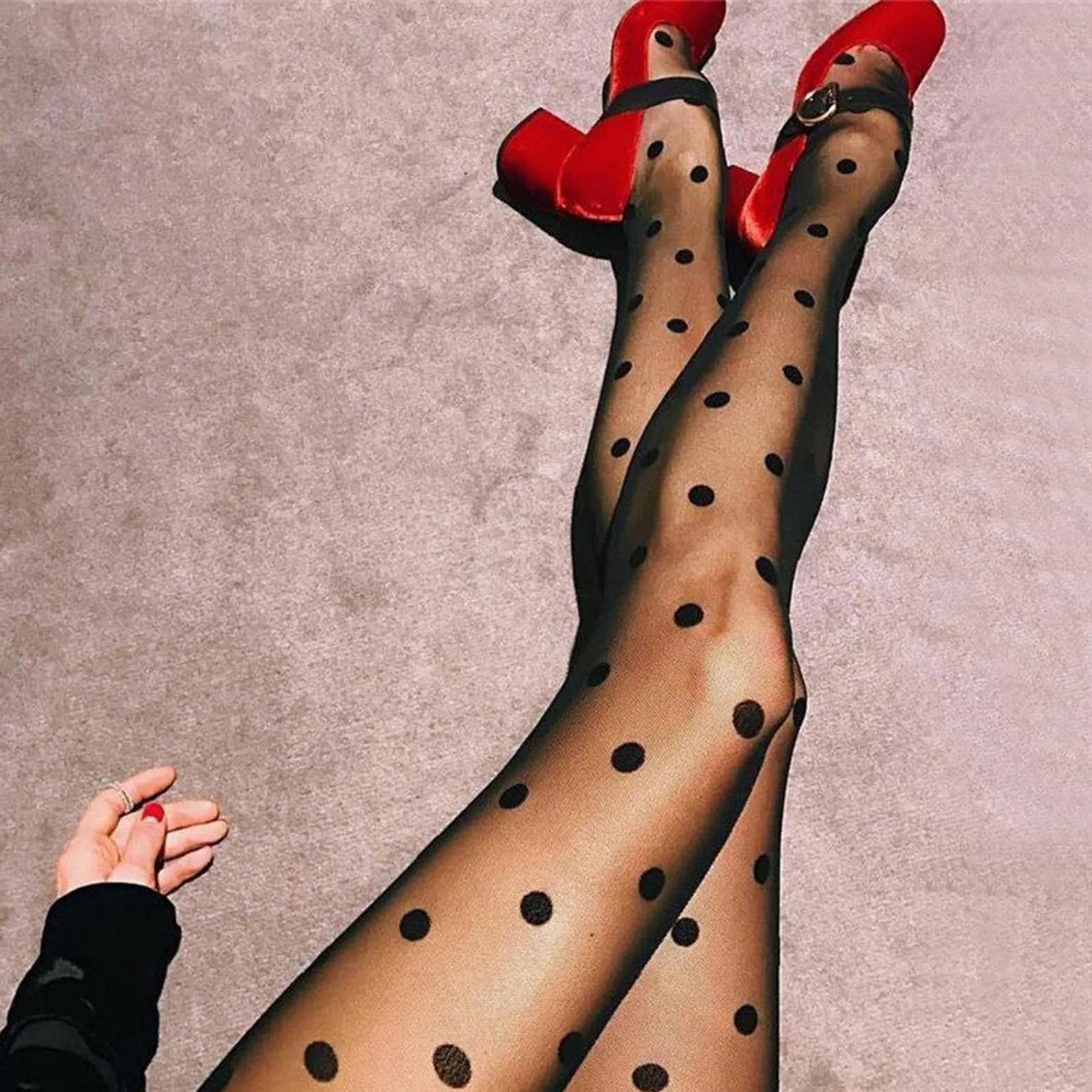 Bas sexy de faux tatouage vintage pour femmes collants en maille fine à pois