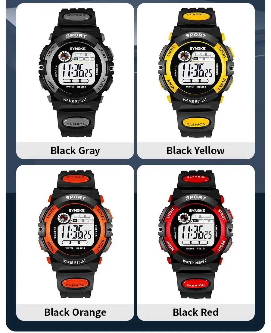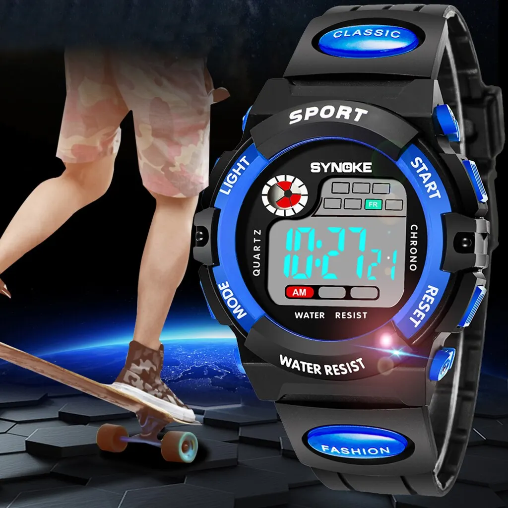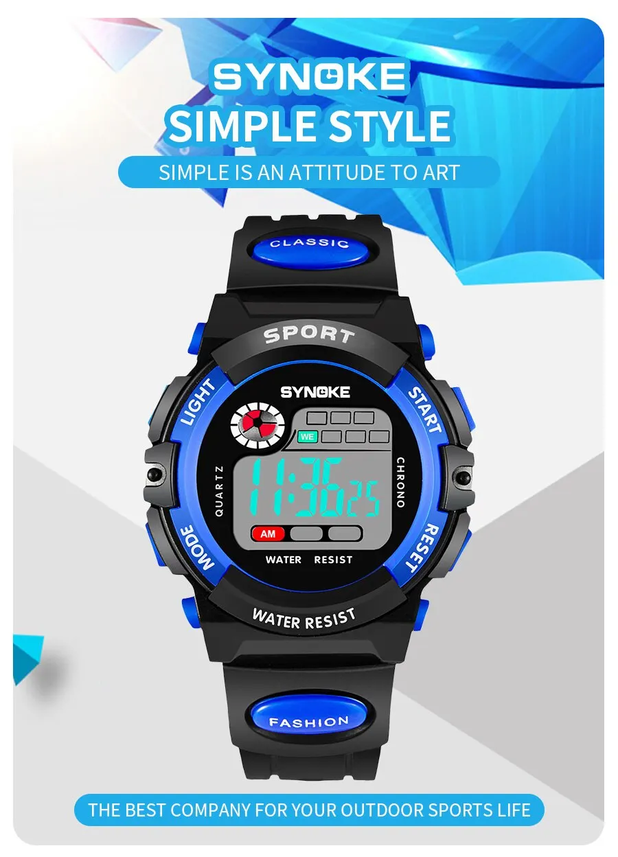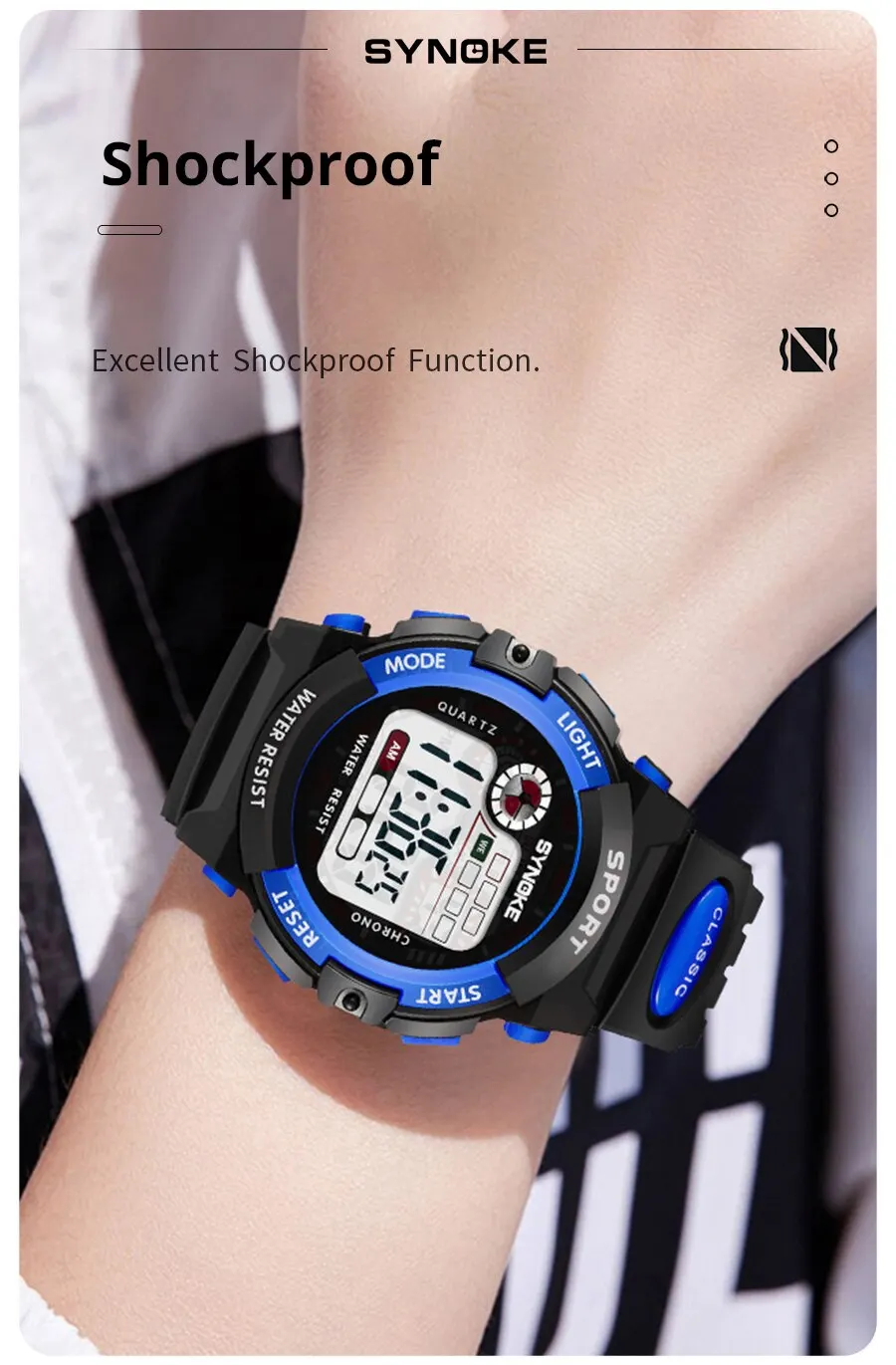 Synoke-montre numérique de sport pour enfants, montre électronique étanche pour garçon | choc | multifonctionnelle et lumineuse