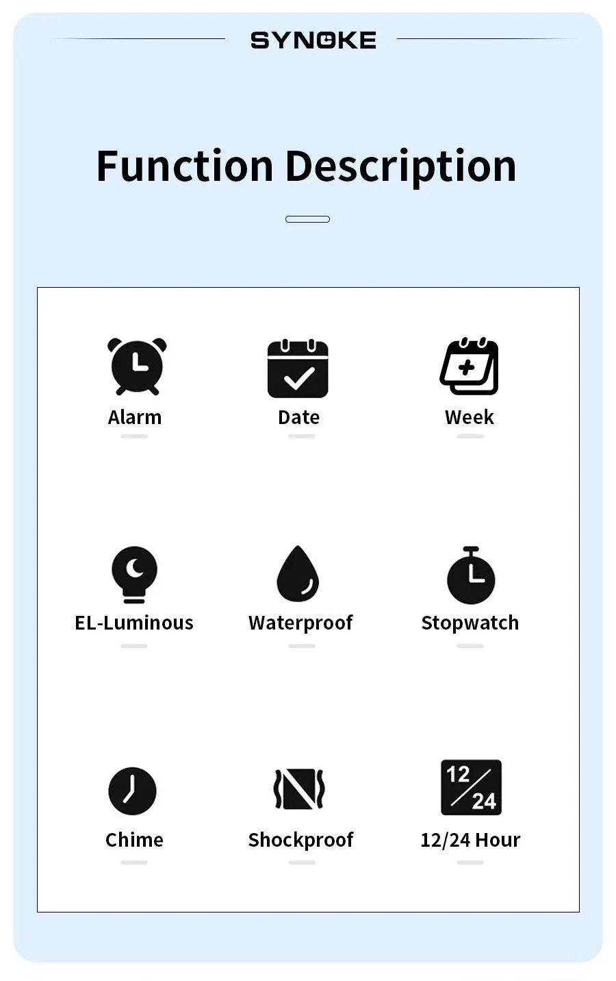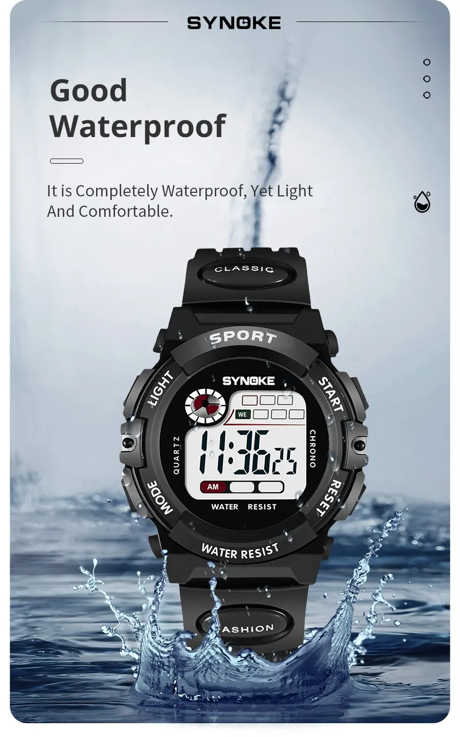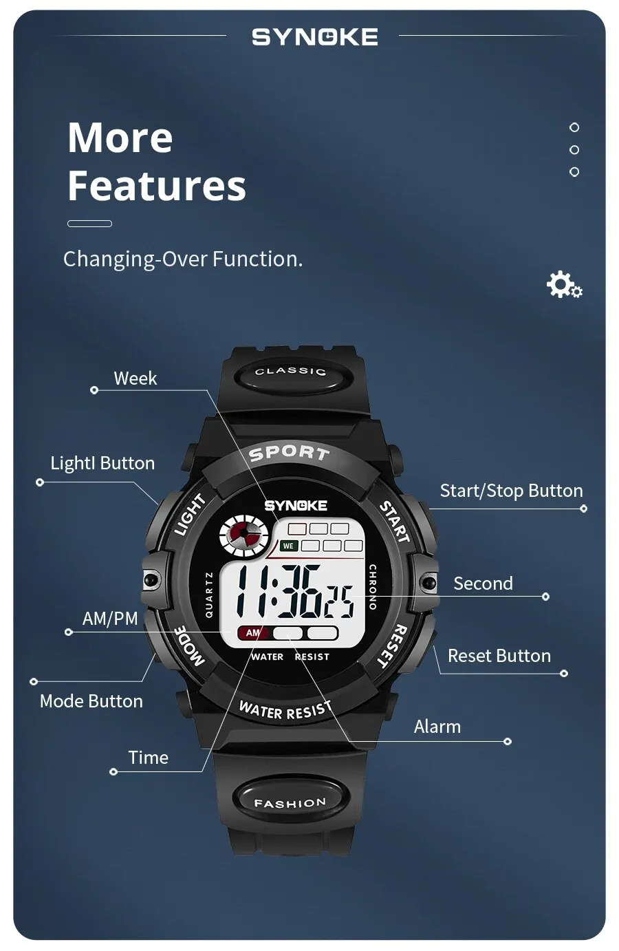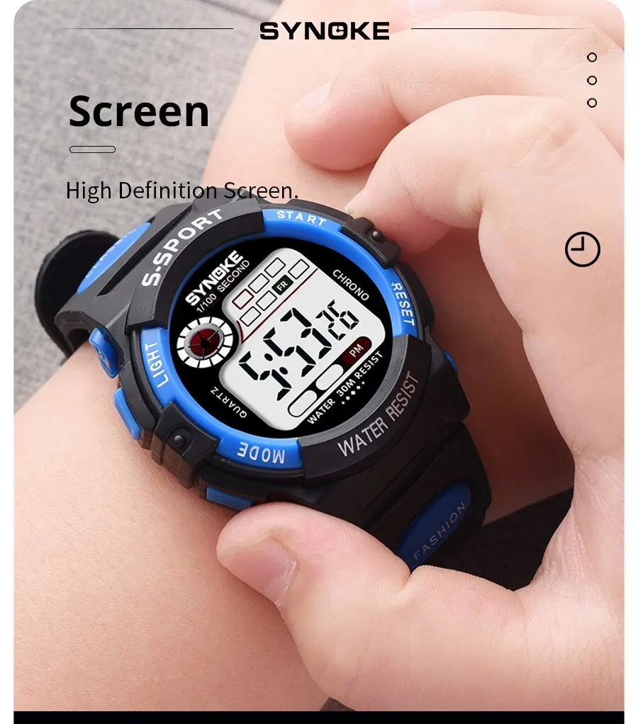 Synoke-montre numérique de sport pour enfants, montre électronique étanche pour garçon | choc | multifonctionnelle et lumineuse