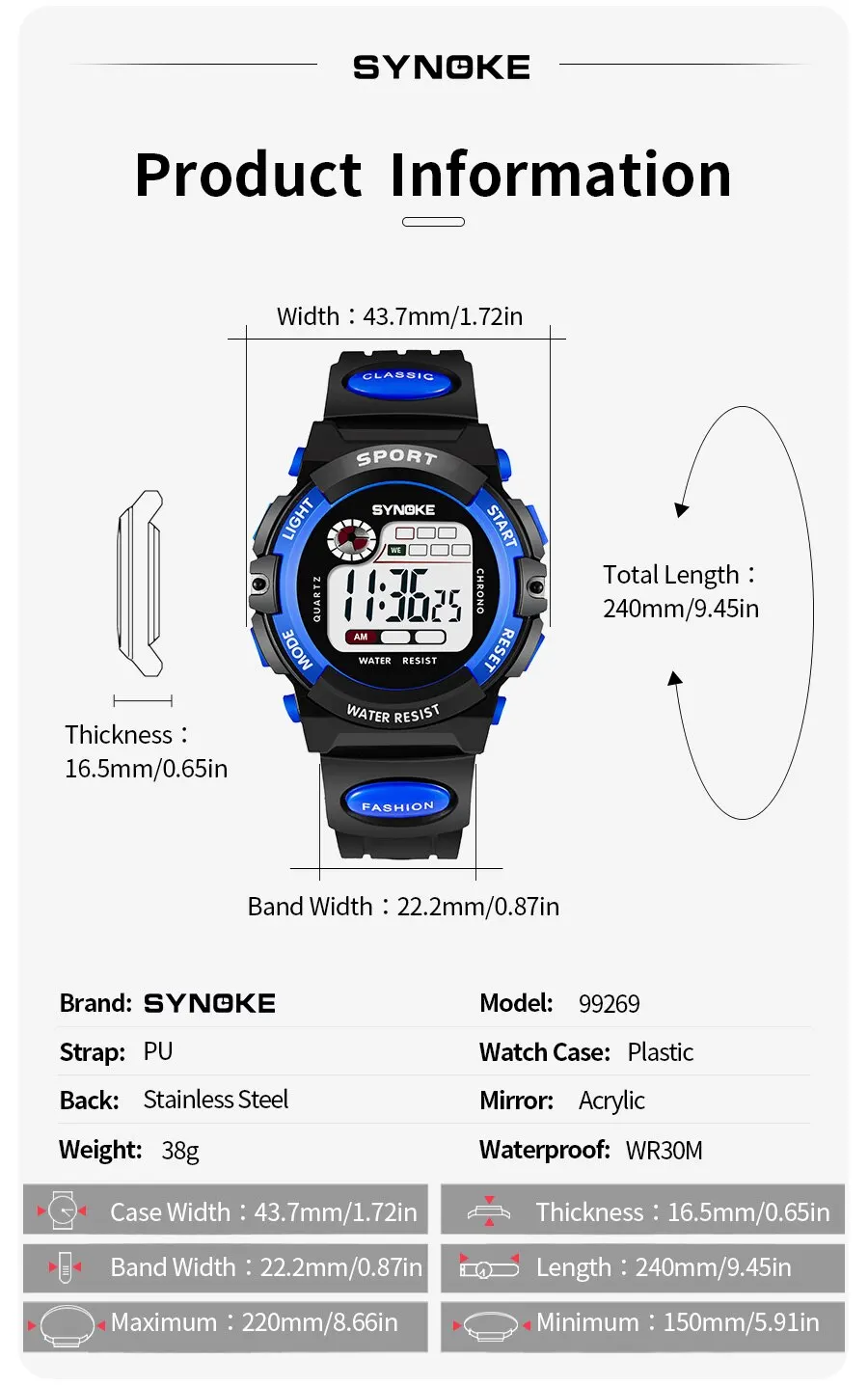 Montre D Apprentissage Garçon > « SYNOKE – Montre numérique enfants, étanche, résistante » – Test et Avis