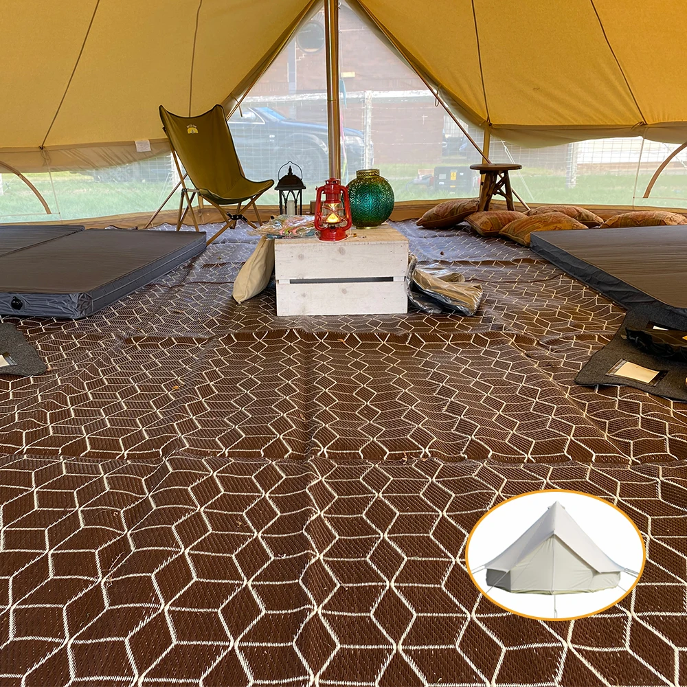 Oui, le tapis peut être utilisé à l’extérieur de la tente pour créer un espace de détente supplémentaire.