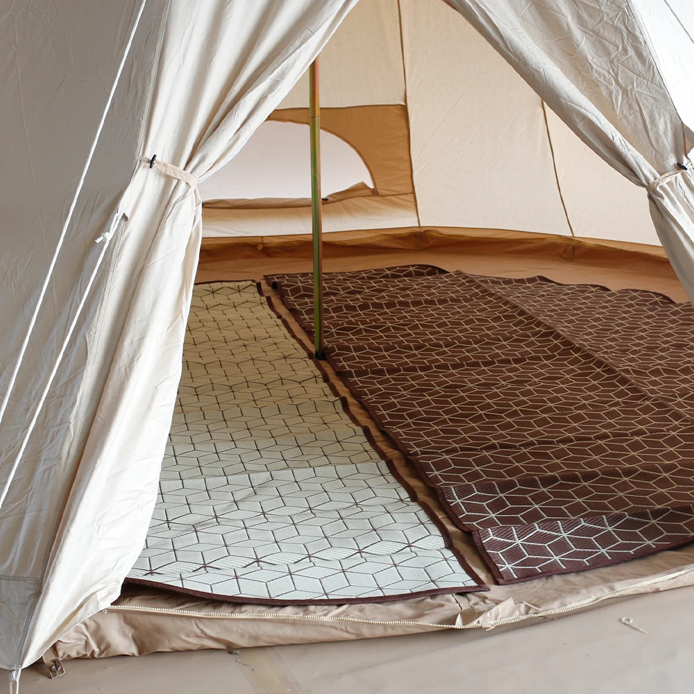 Nous fournissons des nattes dans les tailles de 4m et 5m, qui peuvent être utilisées pour des tentes d’un diamètre de ≥ 4m