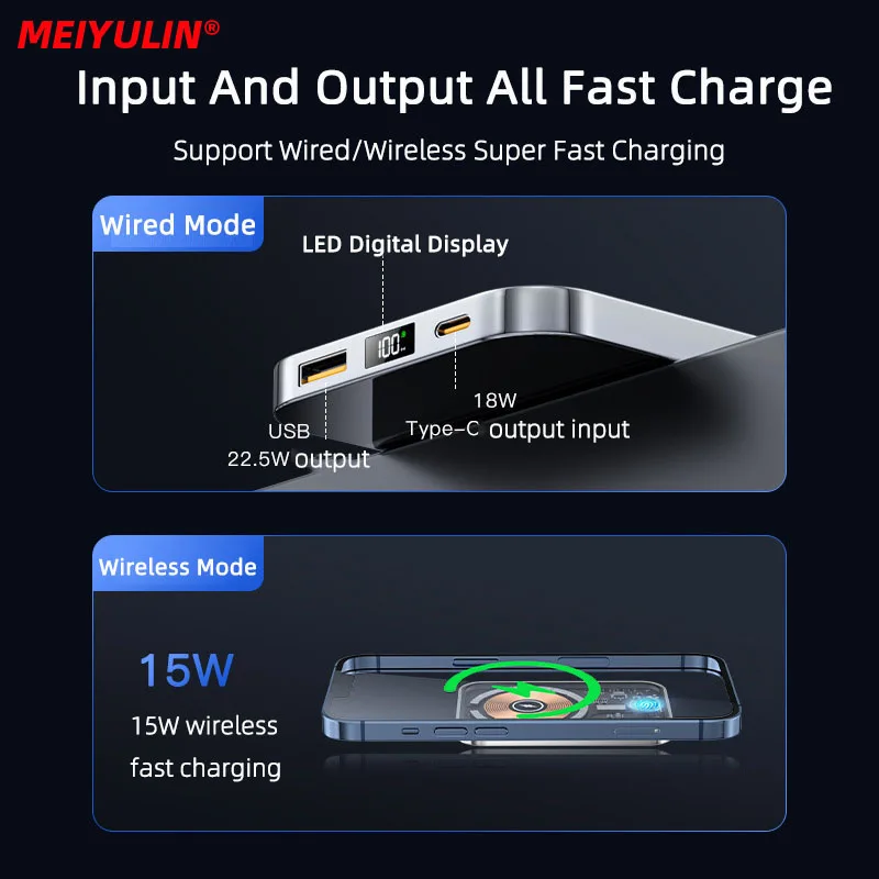 La Banque d’alimentation magnétique transparente est un produit innovant et pratique. Son design transparent magnétique lui confère une esthétique unique. Avec sa capacité de 10000mAh, elle offre une puissance de charge de 15W, ce qui permet de recharger rapidement les appareils tels que les iPhones, les Xiaomis et les Samsungs. Cependant, il est important de noter que cette banque d’alimentation n’a pas la fonction d’empreinte digitale. Malgré cela, elle reste un choix idéal pour ceux qui recherchent une batterie externe portable performante.